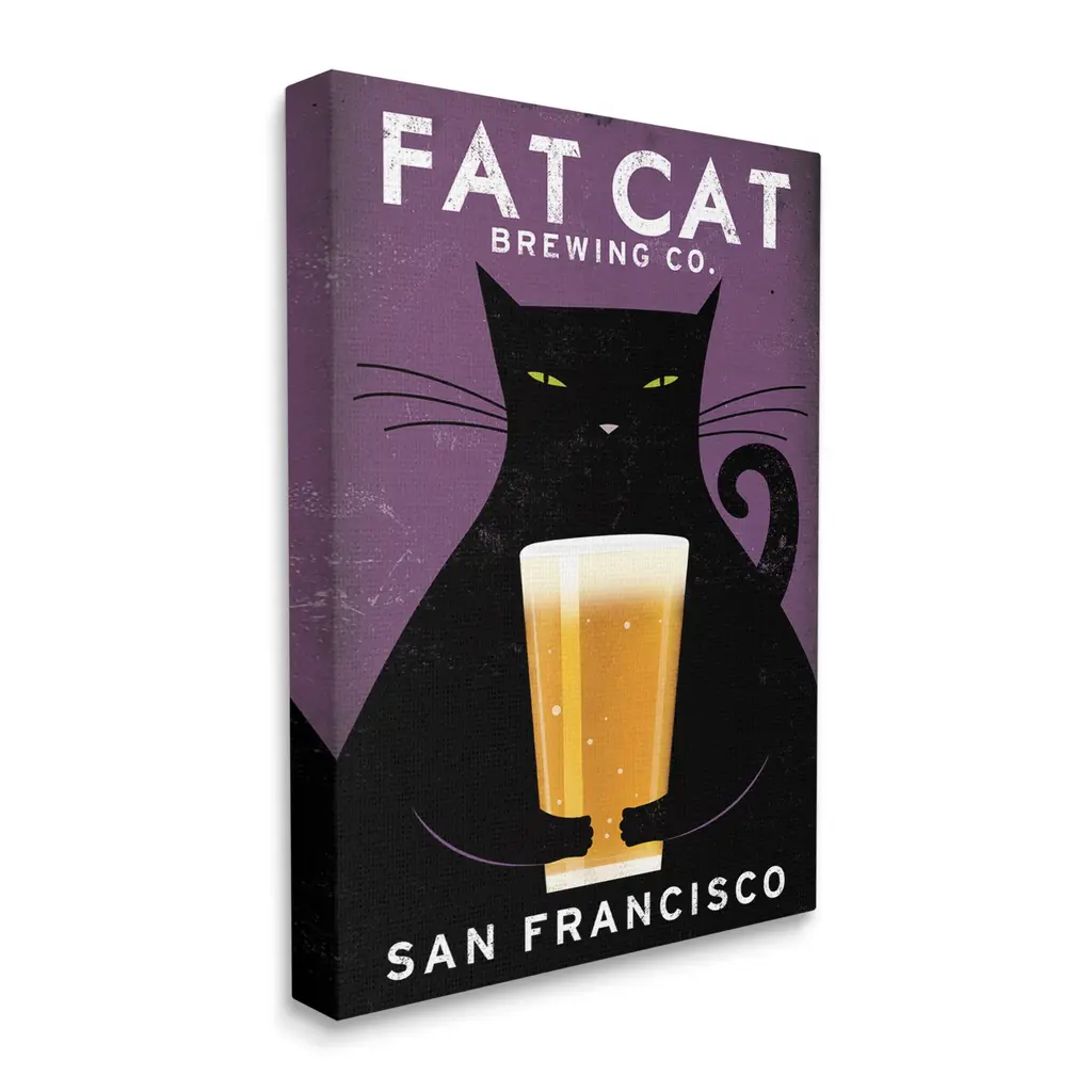Stupell Fat Cat Brewing Vintage Typography Stretched Canvas Wall Art, Design By Ryan Fowler - 36 X 48