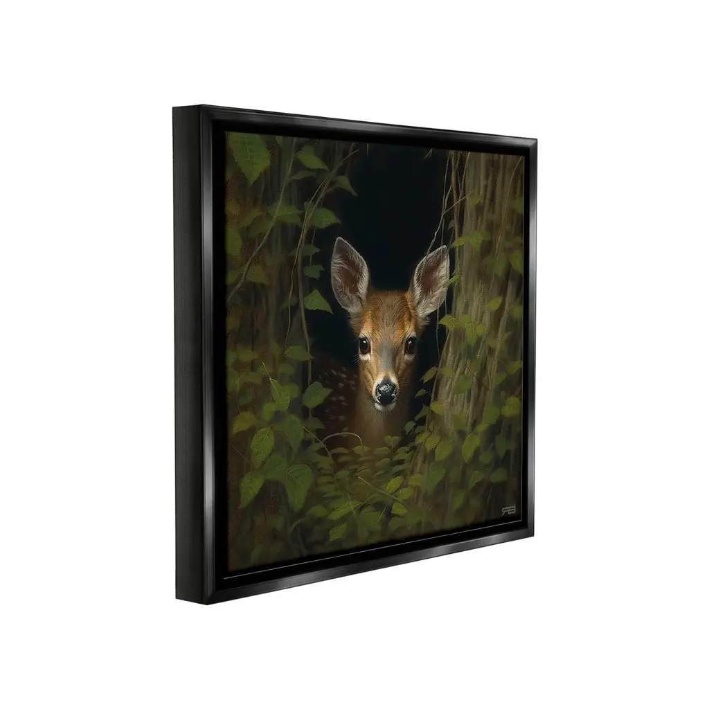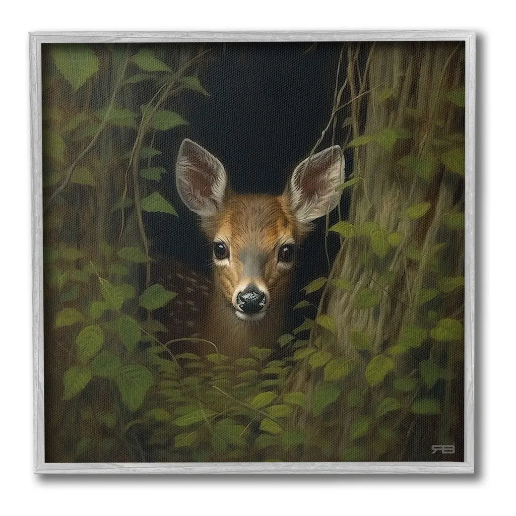 Elevate your home or office to the next level with Stupell Framed Floating Canvas Wall Art. Our premium hand-stretched canvas is mounted securely into a sturdy lightweight frame. The museum-style gap between the wrapped canvas and the box frame gives the illusion of floating artwork. Stupell Wall Art is made in the USA.Features: Dimensions: 18 x 1.7 x 18 Frame, 17 x 1.5 x 17 Canvas ArtFloating Frame Canvas Products are available in sizes 18"x18" and 25"x25". All Floating Frame Canvas Products have a 1.7" Depth.Wall Art is Ready to Hang with Hardware Free Hanging. No Installation required. For Easy Set Up Lean or Layer Artwork on Shelf or Against Wall. Artwork is Permently Fixed into the Frame.Our elevated 1.7" Thick Floating Frame is the perfect complement to our canvas style Wall Art. We use only the highest quality inks in house with industry leading printing solutions. Canvas is hand stretched over a durable wood foundation and then mounted securly into a Modern Box Frame. Made in the USA.Artwork Relates To: Animal, Deer, Mammal, Wildlife, Plant, Woodland, Forest, FawnDesign by RB