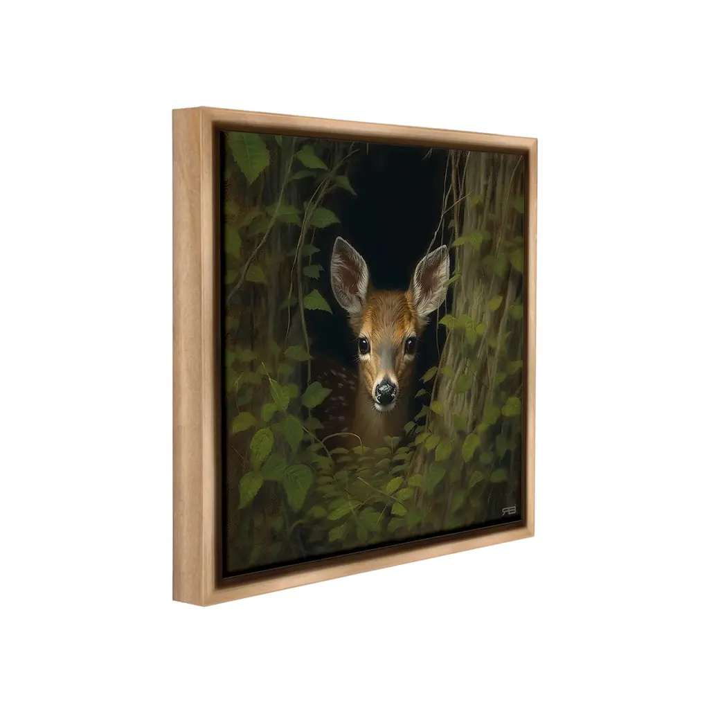 Elevate your home or office to the next level with Stupell Framed Floating Canvas Wall Art. Our premium hand-stretched canvas is mounted securely into a sturdy lightweight frame. The museum-style gap between the wrapped canvas and the box frame gives the illusion of floating artwork. Stupell Wall Art is made in the USA.Features: Dimensions: 18 x 1.7 x 18 Frame, 17 x 1.5 x 17 Canvas ArtFloating Frame Canvas Products are available in sizes 18"x18" and 25"x25". All Floating Frame Canvas Products have a 1.7" Depth.Wall Art is Ready to Hang with Hardware Free Hanging. No Installation required. For Easy Set Up Lean or Layer Artwork on Shelf or Against Wall. Artwork is Permently Fixed into the Frame.Our elevated 1.7" Thick Floating Frame is the perfect complement to our canvas style Wall Art. We use only the highest quality inks in house with industry leading printing solutions. Canvas is hand stretched over a durable wood foundation and then mounted securly into a Modern Box Frame. Made in the USA.Artwork Relates To: Animal, Deer, Mammal, Wildlife, Plant, Woodland, Forest, FawnDesign by RB