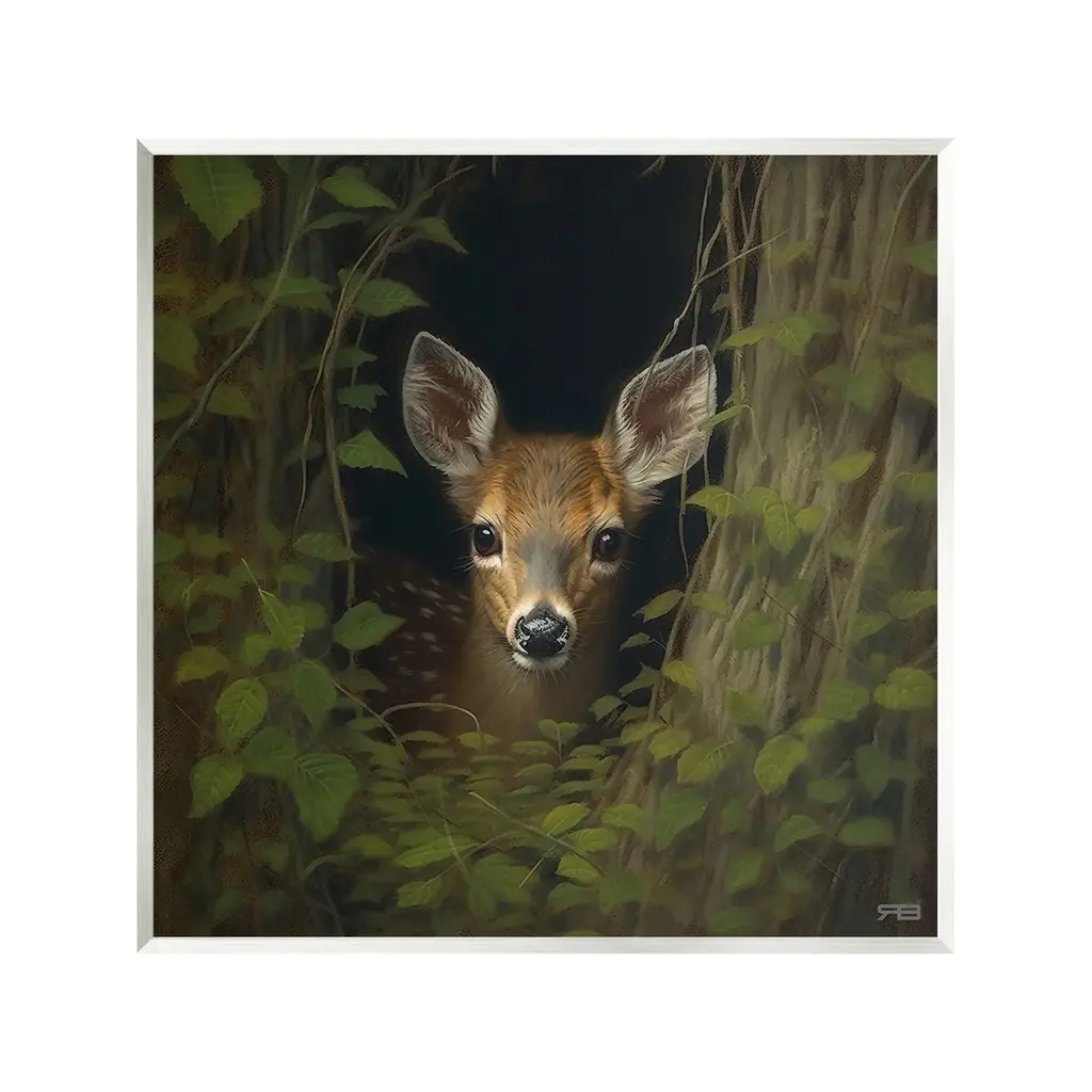 Add dimension to any room with our textured Framed Giclee Artwork. Our framed artwork is securely mounted into a 1.5-inch thick wood grain frame and ready to hang. Frames are available in three alluring styles: black, gray farmhouse and white. In addition, you should check out our oversized options if you want a statement piece. Stupell Wall Art is made in the USA.Features: Dimensions: 12 x 1.5 x 12 FramedFramed Giclee Product Sizes Include 12"x12", 17"x17", and 24"x24". Framed Giclee Products have a 1.5" Depth. Wall Art is Ready to Hang with Hardware Free Hanging. No installation required. For Easy Set Up Lean or Layer Artwork on Shelf or Against Wall.Our giclée prints are carefully mounted on a durable MDF backing, and then perfectly finished in a 1.5 inch thick woodgrain frame. Mounted frame colors include black, gray farmhouse and white. Made In USA.Artwork Relates To: Animal, Deer, Mammal, Wildlife, Plant, Woodland, Forest, FawnDesign by RB