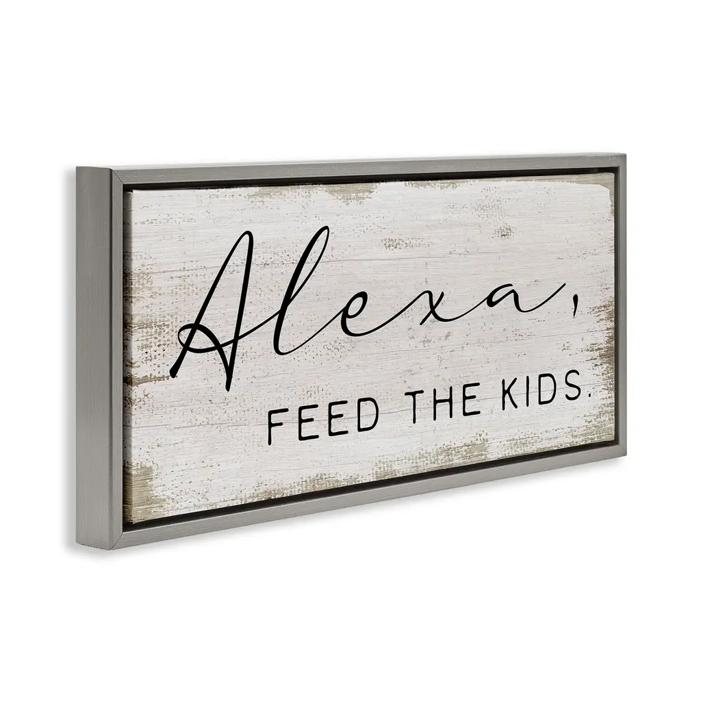 Elevate your home or office to the next level with Stupell Framed Floating Canvas Wall Art. Our premium hand-stretched canvas is mounted securely into a sturdy lightweight frame. The museum-style gap between the wrapped canvas and the box frame gives the illusion of floating artwork. Stupell Wall Art is made in the USA.Features: Dimensions: 25 x 1.7 x 11 Frame, 24 x 1.5 x 10 Canvas ArtFloating Frame Canvas Products are available in sizes 25"x11" and 31"x14". All Floating Frame Canvas Products have a 1.7" Depth.Wall Art is Ready to Hang with Hardware Free Hanging. No Installation required. For Easy Set Up Lean or Layer Artwork on Shelf or Against Wall. Artwork is Permently Fixed into the Frame.Our elevated 1.7" Thick Floating Frame is the perfect complement to our canvas style Wall Art. We use only the highest quality inks in house with industry leading printing solutions. Canvas is hand stretched over a durable wood foundation and then mounted securly into a Modern Box Frame. Made in the USA.Artwork Relates To: Phrase, Humor, Rustic, Sassy, Kitchen, Alexa, Parenting, FamilyDesign by Daphne Polselli