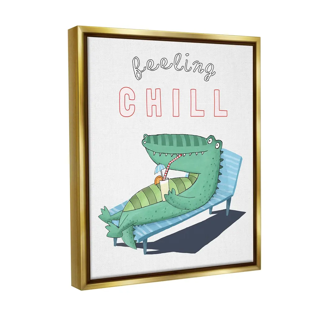Elevate your home or office to the next level with Stupell Framed Floating Canvas Wall Art. Our premium hand-stretched canvas is mounted securely into a sturdy lightweight frame. The museum-style gap between the wrapped canvas and the box frame gives the illusion of floating artwork. Stupell Wall Art is made in the USA.Features: Dimensions: 17 x 1.7 x 21 Frame, 16 x 1.5 x 20 Canvas ArtFloating Frame Canvas Products are available in sizes 17"x21" and 25"x31". All Floating Frame Canvas Products have a 1.7" Depth.Wall Art is Ready to Hang with Hardware Free Hanging. No Installation required. For Easy Set Up Lean or Layer Artwork on Shelf or Against Wall. Artwork is Permently Fixed into the Frame.Our elevated 1.7" Thick Floating Frame is the perfect complement to our canvas style Wall Art. We use only the highest quality inks in house with industry leading printing solutions. Canvas is hand stretched over a durable wood foundation and then mounted securly into a Modern Box Frame. Made in the USA.Artwork Relates To: Animal, Nautical, Beach, Tropical, Alligator, Crocodile, Summer, Feeling ChillDesign by Carla Daly