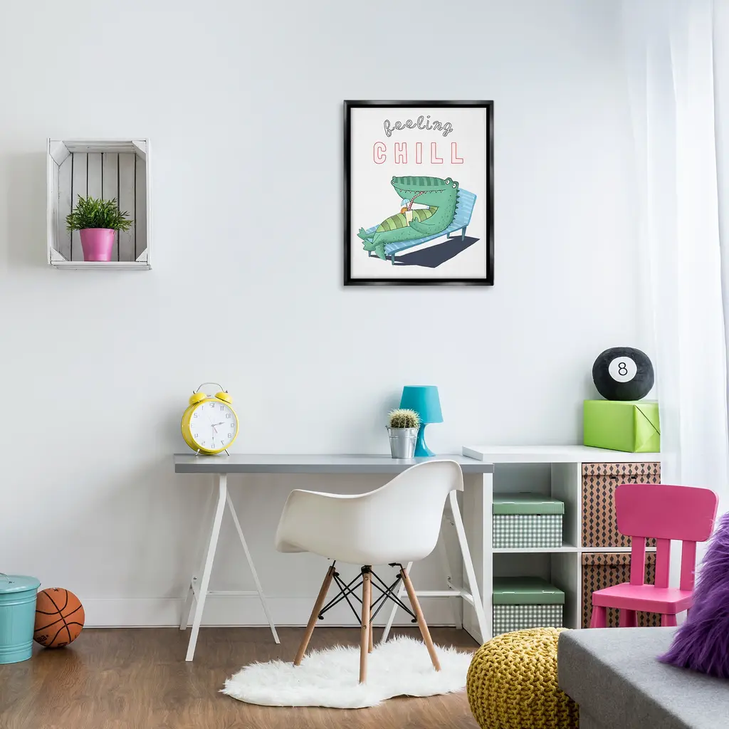 Elevate your home or office to the next level with Stupell Framed Floating Canvas Wall Art. Our premium hand-stretched canvas is mounted securely into a sturdy lightweight frame. The museum-style gap between the wrapped canvas and the box frame gives the illusion of floating artwork. Stupell Wall Art is made in the USA.Features: Dimensions: 17 x 1.7 x 21 Frame, 16 x 1.5 x 20 Canvas ArtFloating Frame Canvas Products are available in sizes 17"x21" and 25"x31". All Floating Frame Canvas Products have a 1.7" Depth.Wall Art is Ready to Hang with Hardware Free Hanging. No Installation required. For Easy Set Up Lean or Layer Artwork on Shelf or Against Wall. Artwork is Permently Fixed into the Frame.Our elevated 1.7" Thick Floating Frame is the perfect complement to our canvas style Wall Art. We use only the highest quality inks in house with industry leading printing solutions. Canvas is hand stretched over a durable wood foundation and then mounted securly into a Modern Box Frame. Made in the USA.Artwork Relates To: Animal, Nautical, Beach, Tropical, Alligator, Crocodile, Summer, Feeling ChillDesign by Carla Daly