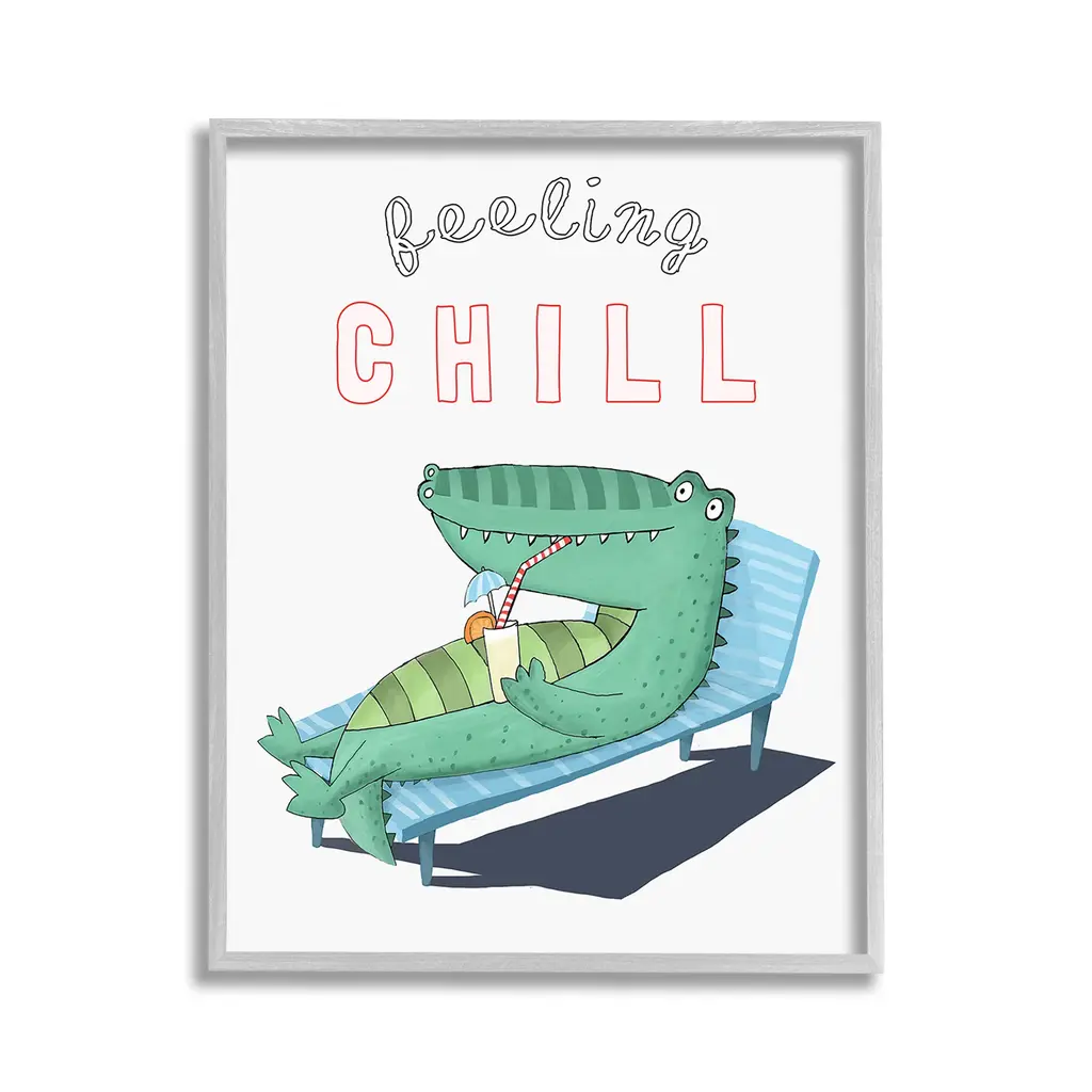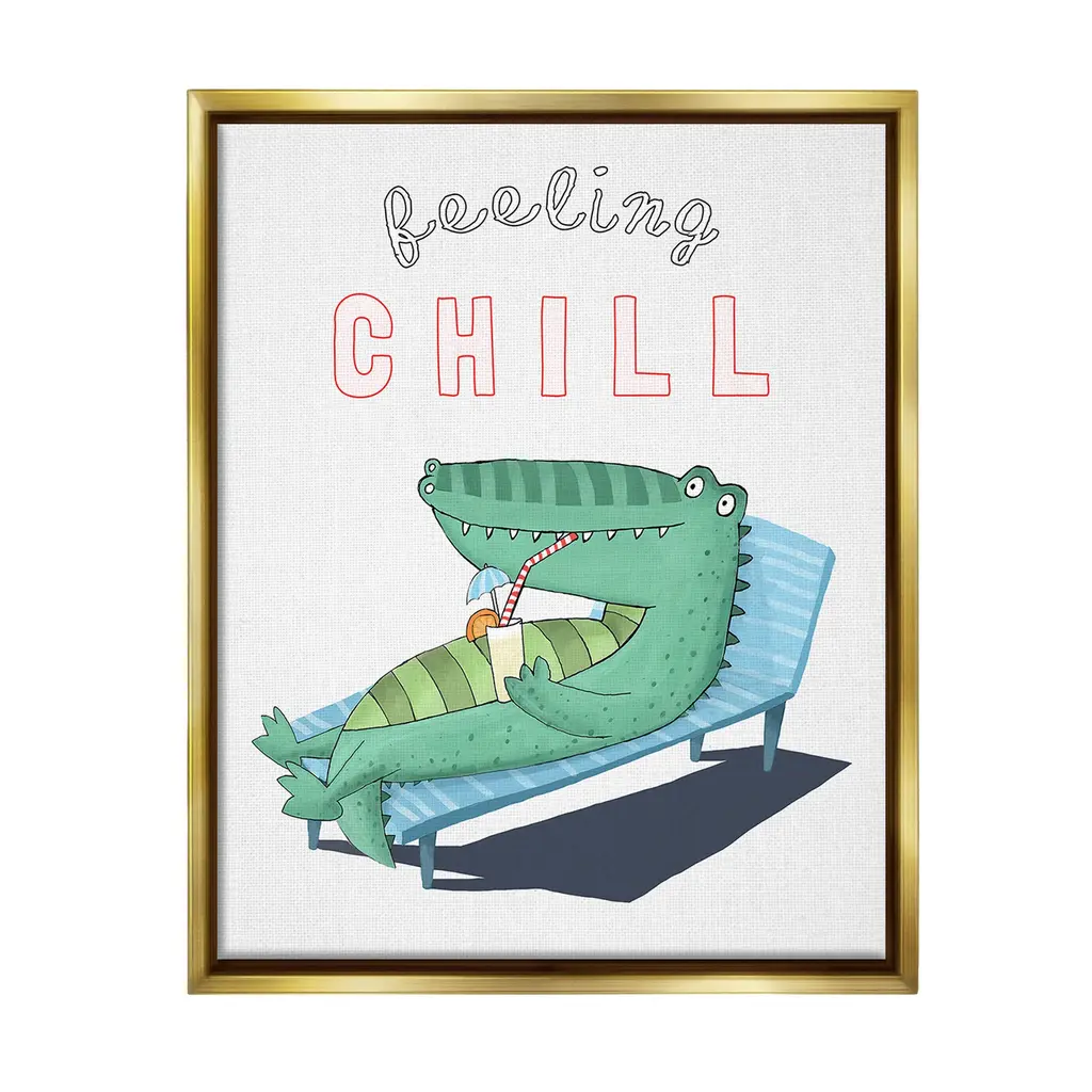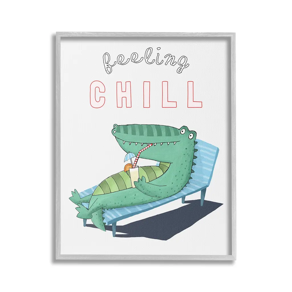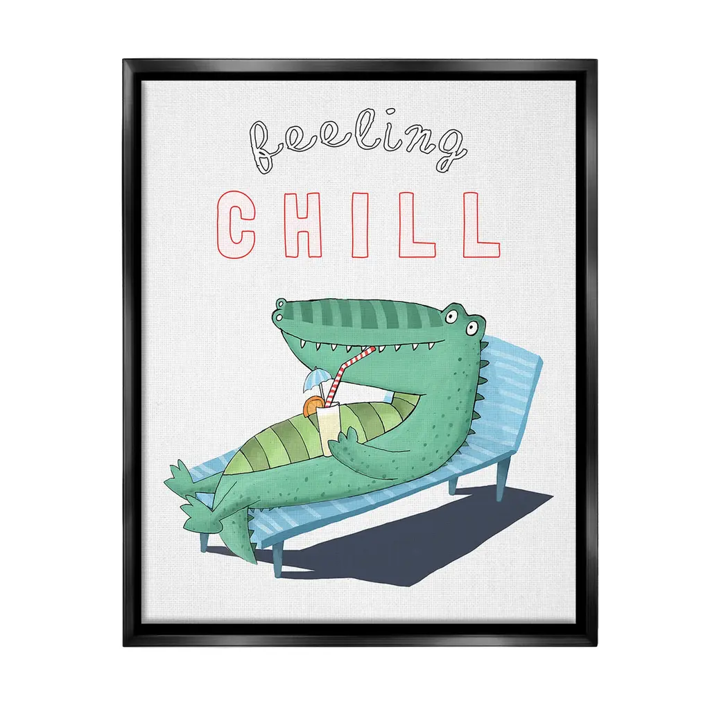 Elevate your home or office to the next level with Stupell Framed Floating Canvas Wall Art. Our premium hand-stretched canvas is mounted securely into a sturdy lightweight frame. The museum-style gap between the wrapped canvas and the box frame gives the illusion of floating artwork. Stupell Wall Art is made in the USA.Features: Dimensions: 17 x 1.7 x 21 Frame, 16 x 1.5 x 20 Canvas ArtFloating Frame Canvas Products are available in sizes 17"x21" and 25"x31". All Floating Frame Canvas Products have a 1.7" Depth.Wall Art is Ready to Hang with Hardware Free Hanging. No Installation required. For Easy Set Up Lean or Layer Artwork on Shelf or Against Wall. Artwork is Permently Fixed into the Frame.Our elevated 1.7" Thick Floating Frame is the perfect complement to our canvas style Wall Art. We use only the highest quality inks in house with industry leading printing solutions. Canvas is hand stretched over a durable wood foundation and then mounted securly into a Modern Box Frame. Made in the USA.Artwork Relates To: Animal, Nautical, Beach, Tropical, Alligator, Crocodile, Summer, Feeling ChillDesign by Carla Daly