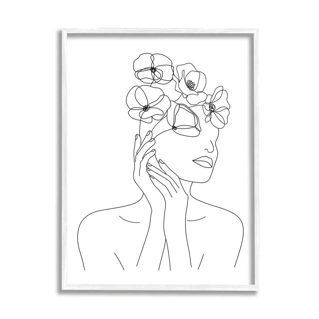 Stupell Female Flowers In Hair Minimal Line Drawing Framed Wall Art - 24 X 30 - Black
