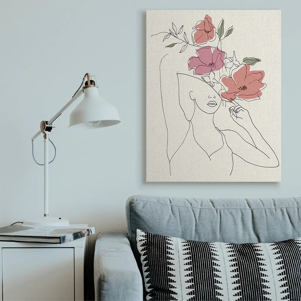 Stupell Female Linework Portrait Blooming Floral Sketch Canvas Wall Art - 16 X 20