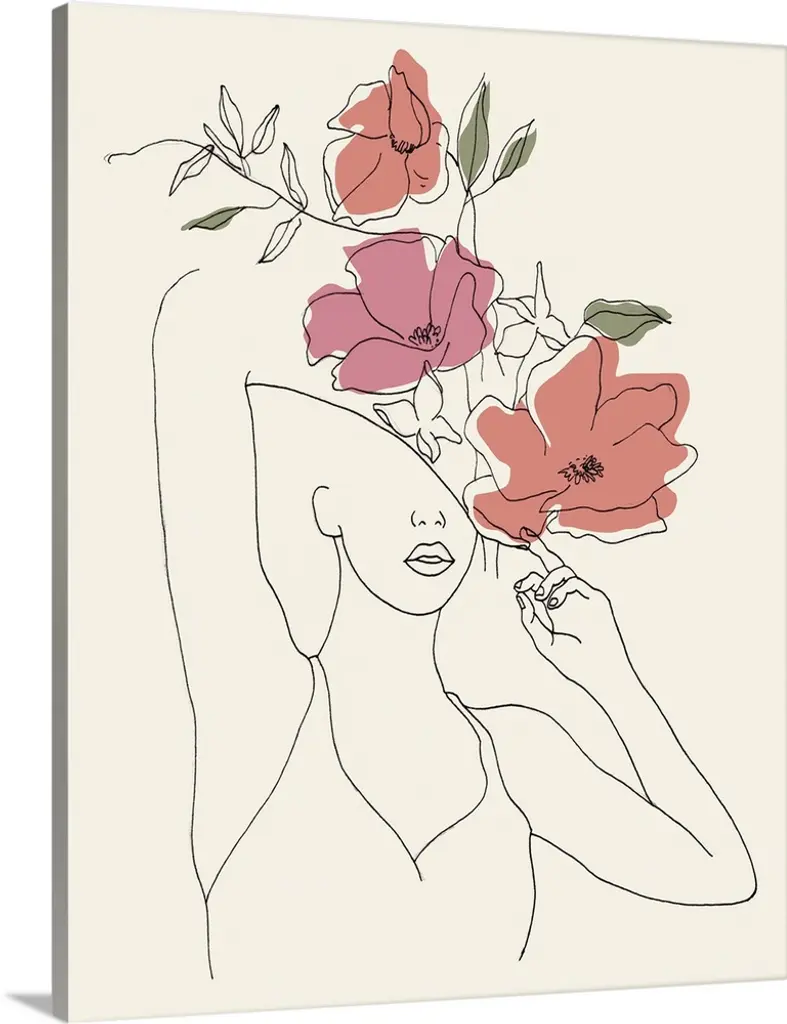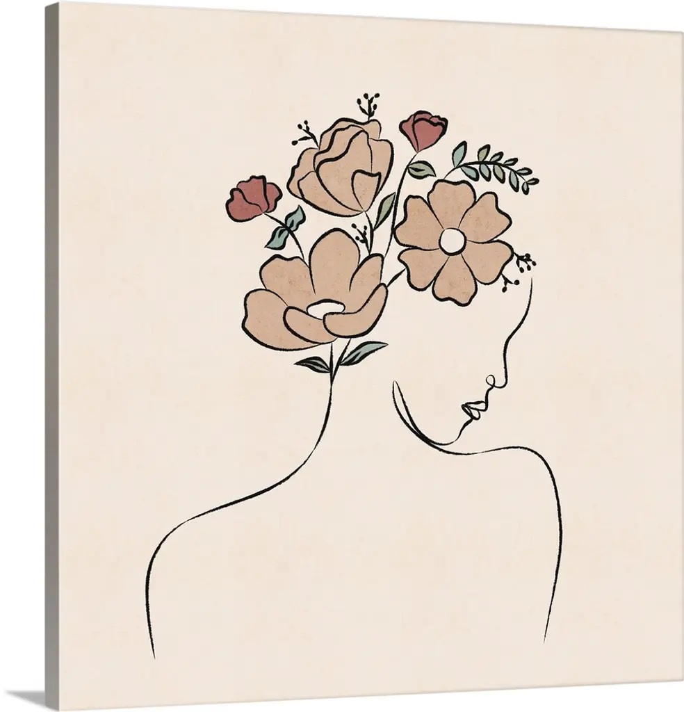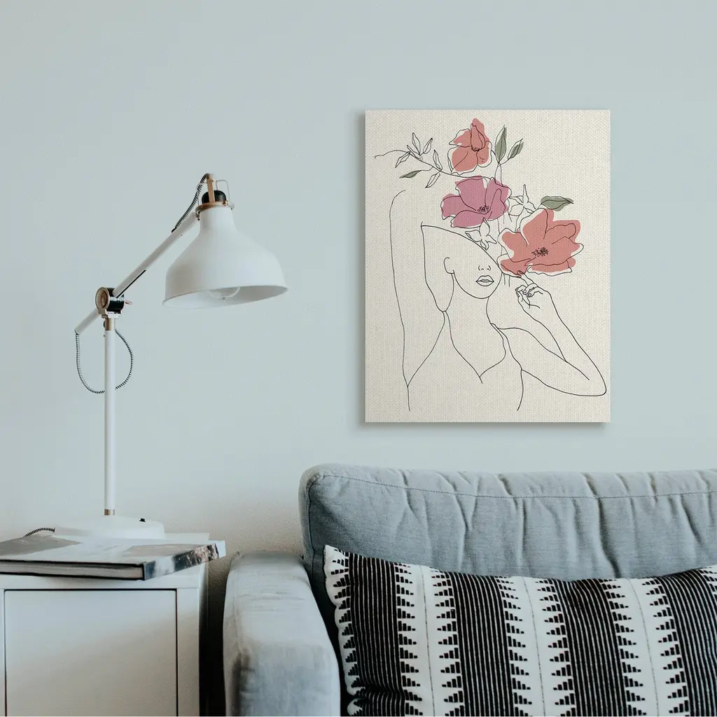 Stupell Female Linework Portrait Blooming Floral Sketch Canvas Wall Art - 24 X 30