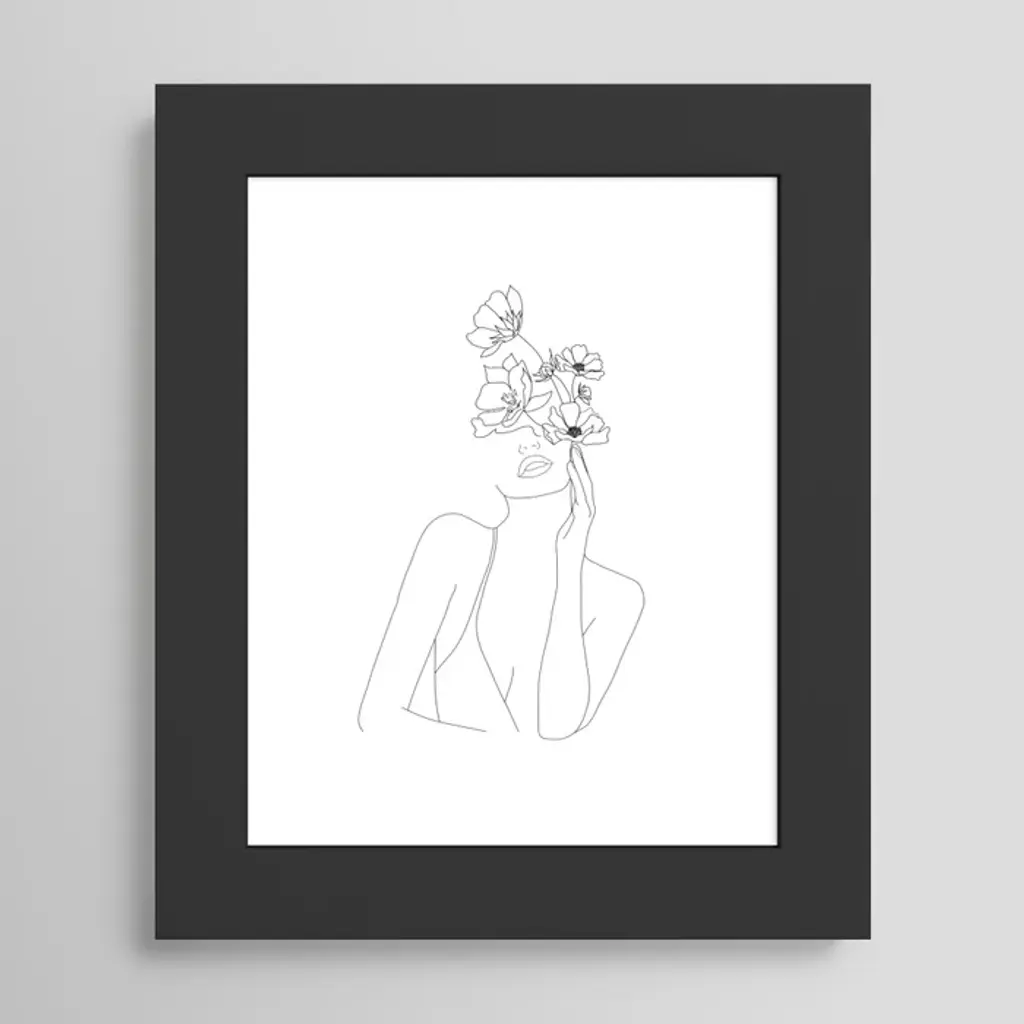 Stupell Female Portrait Line Drawing Between Abstract Shapes Framed Wall Art - 24 X 30 - Black