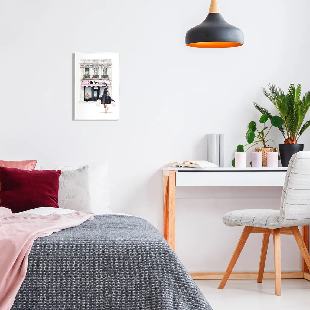 Our wall plaques start as high-quality lithograph prints mounted on durable 0.5-inch thick MDF wood. Each piece is hand finished and comes with a fresh layer of white foil on the sides to give it a crisp, clean look. Plaques arrive ready to hang without installation and come with removable plastic corners to keep them from damage in transit. Wall Art is made in the USA.Features: Dimensions: 10 x 0.5 x 15 InchesWall Plaque Sizes Include Standard: 10 x 0.5 x 15 Oversized: 13 x 0.5 x 19Wall Art is Ready to Hang with Hardware Free Hanging. No installation required. For Easy Set Up Lean or Layer Artwork on Shelf or Against Wall.All of our wall plaques start off as high quality lithograph prints that are then mounted on durable 0.5 inch thick MDF wood. Each piece is hand finished and comes with a fresh layer of foil on the sides to give it a crisp clean look. Made In USA.Artwork Relates To: Female, Person, Woman, Dress, Architecture, Building, Shop, Shopping Bag, Glam, FashionDesign by Amanda Greenwood