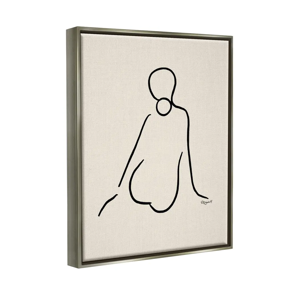 Stupell Female Sitting Doodle Line Nude Drawing Floating Framed Canvas Wall Art, Design By Elizabeth Tyndall - 17 X 21 - Grey
