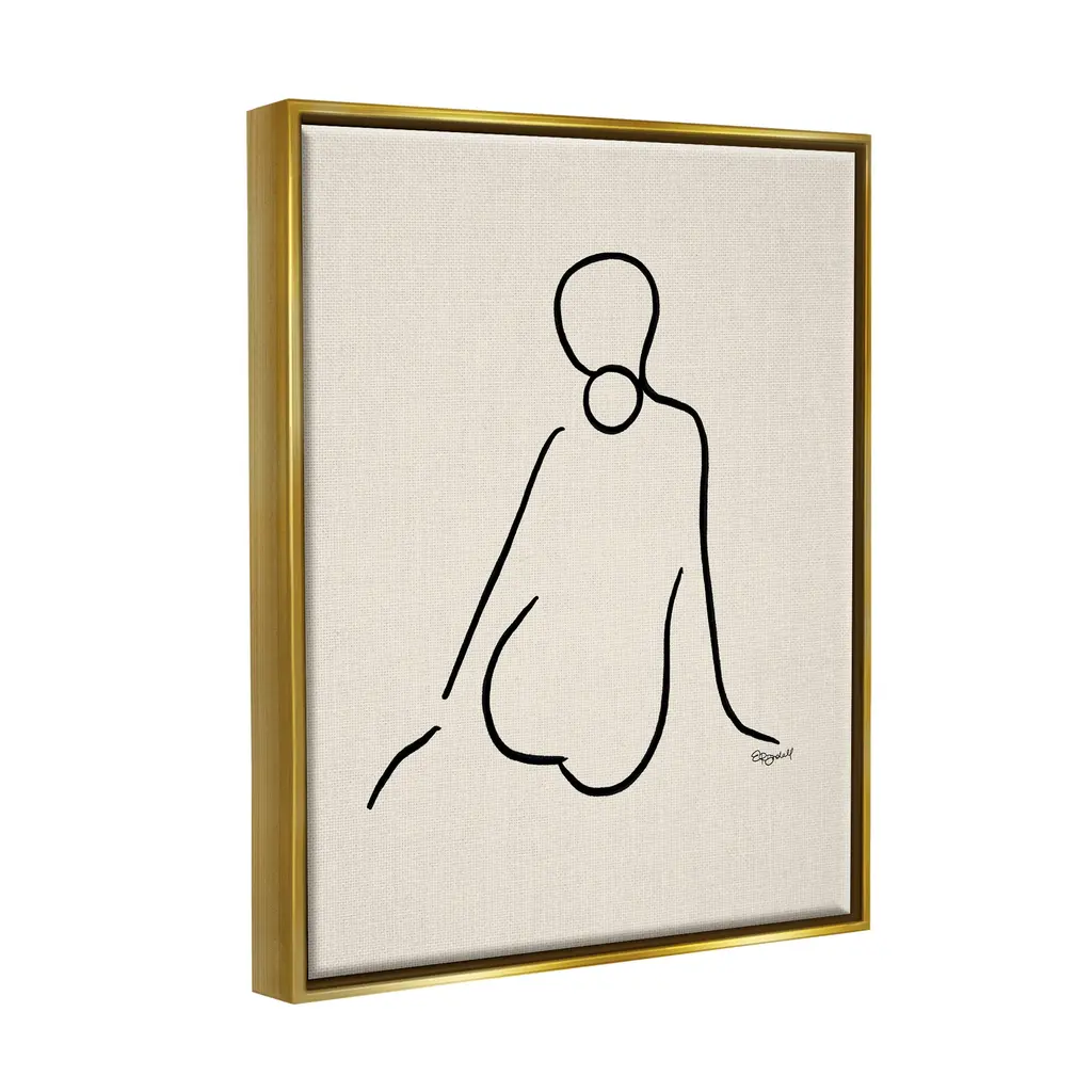 Stupell Female Sitting Doodle Line Nude Drawing Floating Framed Canvas Wall Art, Design By Elizabeth Tyndall - 25 X 31 - Gold