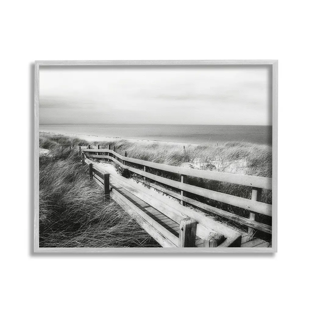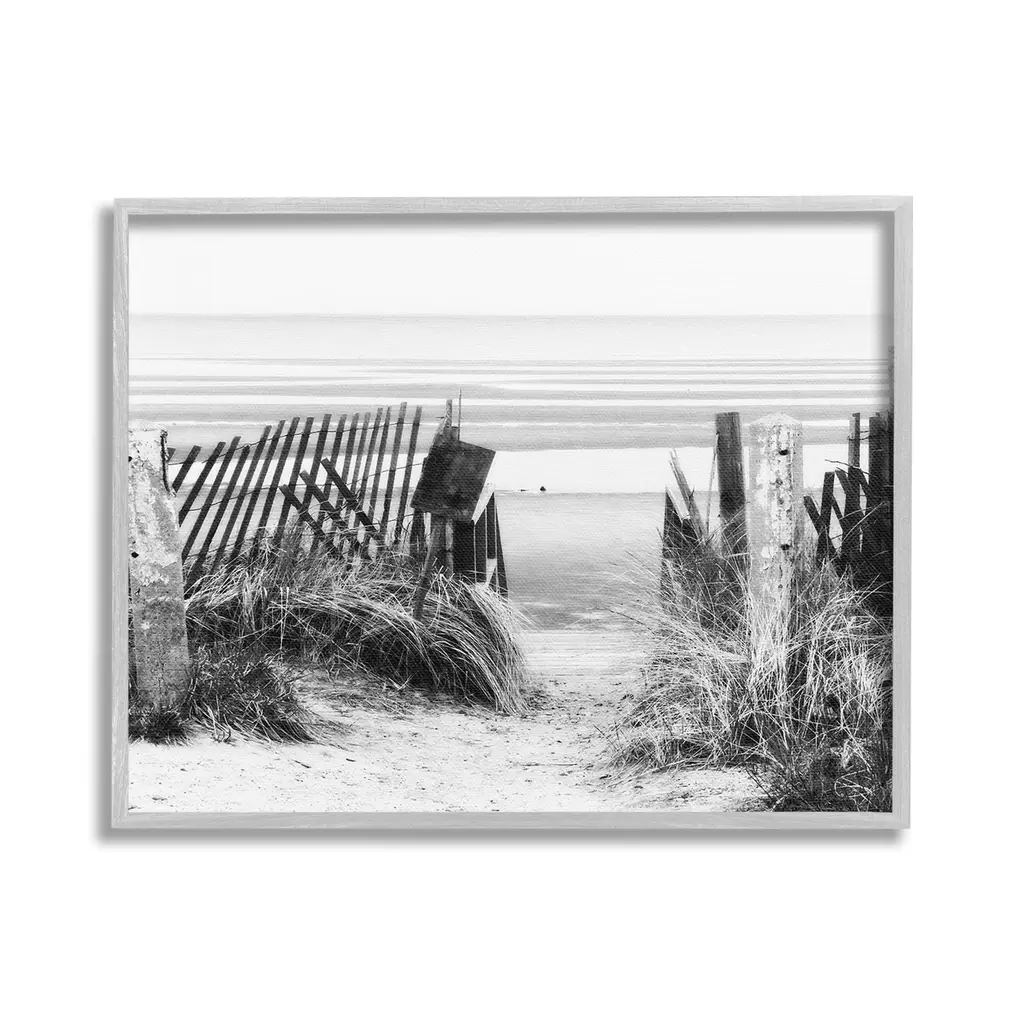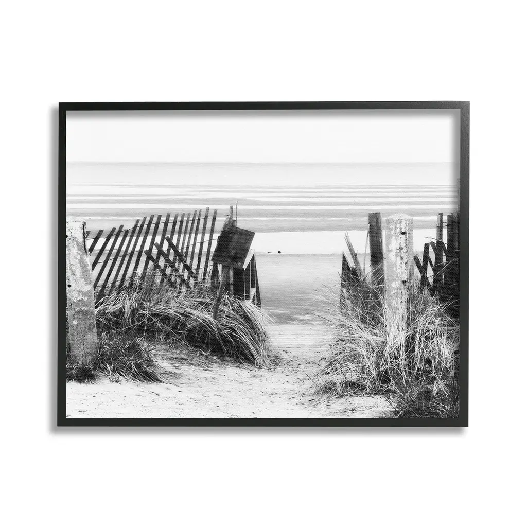 Add dimension to any room with our textured Framed Giclee Artwork. Our framed artwork is securely mounted into a 1.5-inch thick wood grain frame and ready to hang. Frames are available in three alluring styles: black, gray farmhouse and white. In addition, you should check out our oversized options if you want a statement piece. Stupell Wall Art is made in the USA.Features: Dimensions: 14 x 1.5 x 11 FramedFramed Giclee Products are available in the sizes 14"x11", 20"x16" or 30"x24". All Framed Giclee Products have a 1.5" Depth. Wall Art is Ready to Hang with Hardware Free Hanging. No installation required. For Easy Set Up Lean or Layer Artwork on Shelf or Against Wall.Our giclée prints are carefully mounted on a durable MDF backing, and then perfectly finished in a 1.5 inch thick woodgrain frame. Mounted frame colors include black, gray farmhouse and white. Made In USA.Artwork Relates To: Beach, Coast, Sea, Shoreline, Fence, Nautical, Shore, Monochrome, PhotographyDesign by GraffiTee Studios