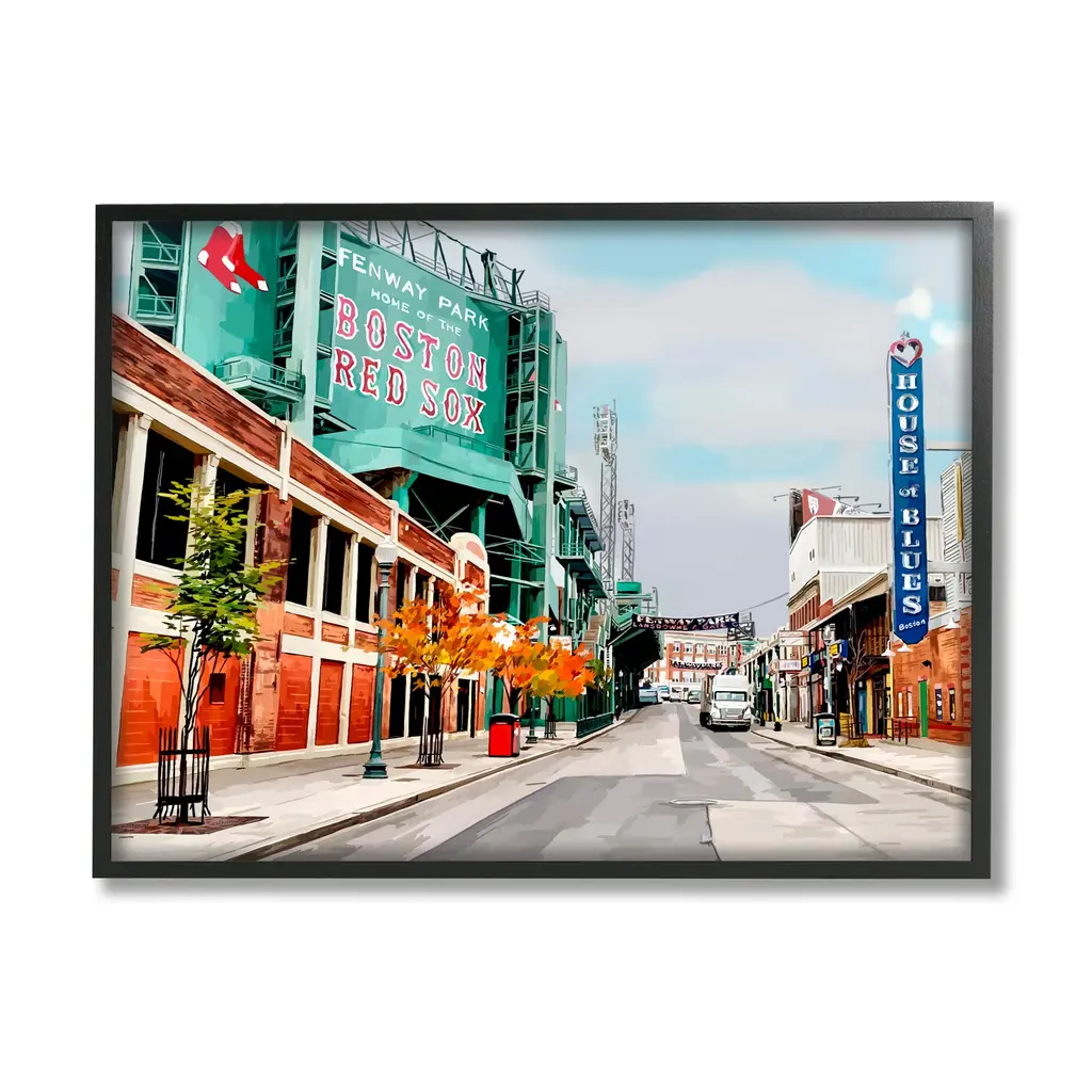 Add dimension to any room with our textured Framed Giclee Artwork. Our framed artwork is securely mounted into a 1.5-inch thick wood grain frame and ready to hang. Frames are available in three alluring styles: black, gray farmhouse and white. In addition, you should check out our oversized options if you want a statement piece. Stupell Wall Art is made in the USA.Features: Dimensions: 14 x 1.5 x 11 FramedFramed Giclee Sizes Include Standard: 14 x 1.5 x 11 Large: 20 x 1.5 x 16 Oversized: 30 x 1.5 x 24Wall Art is Ready to Hang - No Installation or Hardware Needed. For Easy Set Up Lean or Layer Artwork on Shelf or Against Wall.Our giclée prints are carefully mounted on a durable MDF backing, and then perfectly finished in a 1.5 inch thick woodgrain frame. Mounted frame colors include black, gray farmhouse and white. Made In USA.Artwork Relates To: Fenway Park, Boston Red Sox, Boston, City, UrbanDesign by Emily Kalina