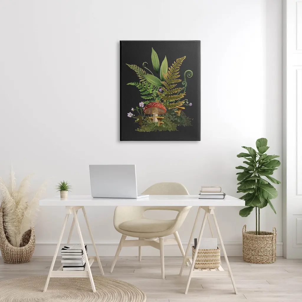 Proudly made in the USA, Our stretched canvas is created with the highest standards. We use only the highest quality inks and canvas on our in house Mimaki printers, and then hand cut and stretch each piece over a 1.5 inch thick wooden frame for hanging. The art comes ready to hang with no installation required.Features: Dimensions: 16 x 1.5 x 20 InchesStretched Canvas Sizes Include Standard: 16 x 1.5 x 20 Large: 20 x 1.5 x 30 X-Large: 30 x 1.5 x 40 Oversized: 36 x 1.5 x 48Wall Art is Ready to Hang - No Installation or Hardware Needed. For Easy Set Up Lean or Layer Artwork on Shelf or Against Wall.Our stretched canvas is created with the highest standards. We use only the highest quality inks and canvas on our in house Mimaki printers, and then hand cut and stretch each piece over a 1.5 inch thick wooden frame for hanging. Made In USA.Artwork Relates To: Plant, Fern, Flower, Fungus, Leaf, Floral, Herb, Forest, Woodland, MushroomDesign by House of Rose