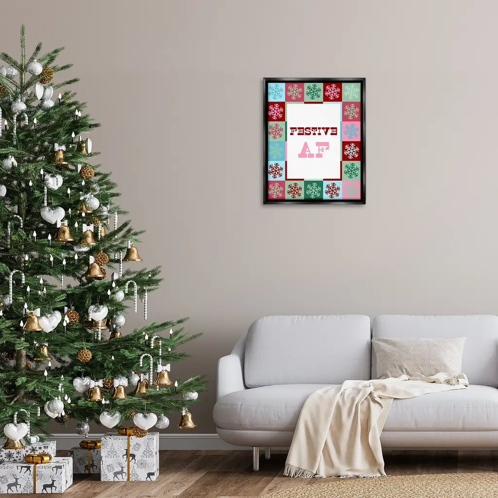 Stupell Festive Af With Snowflakes Framed Floater Canvas Wall Art Design By Lil' Rue - 25 X 31 - Black