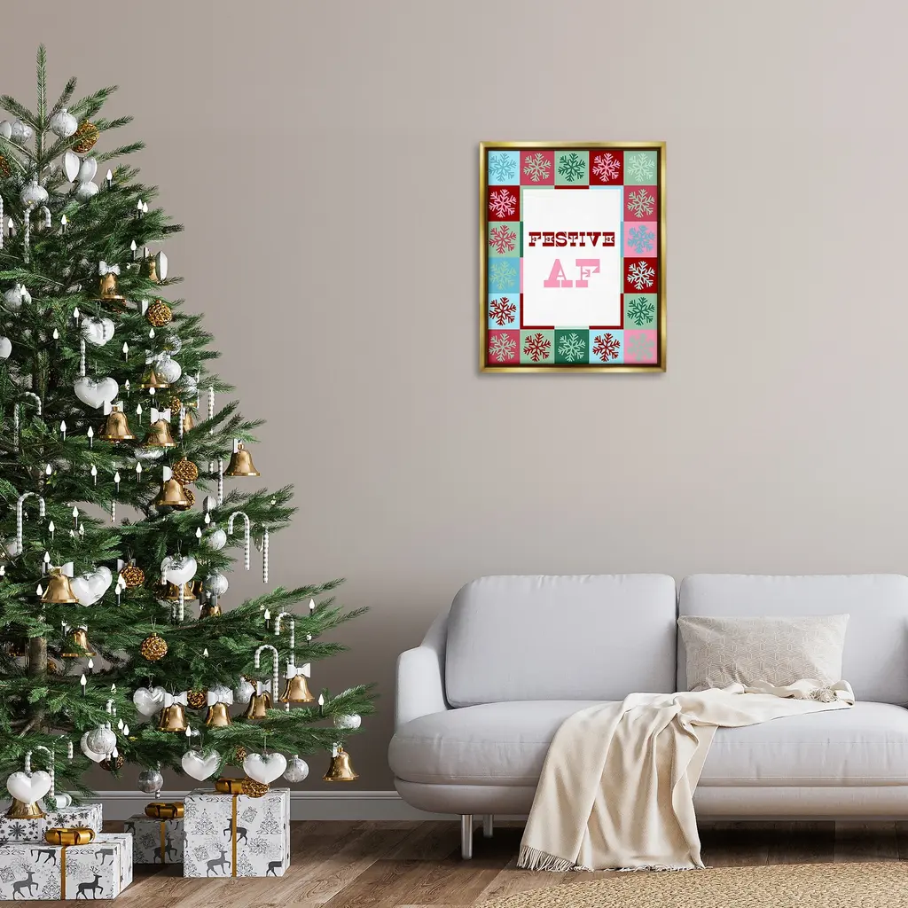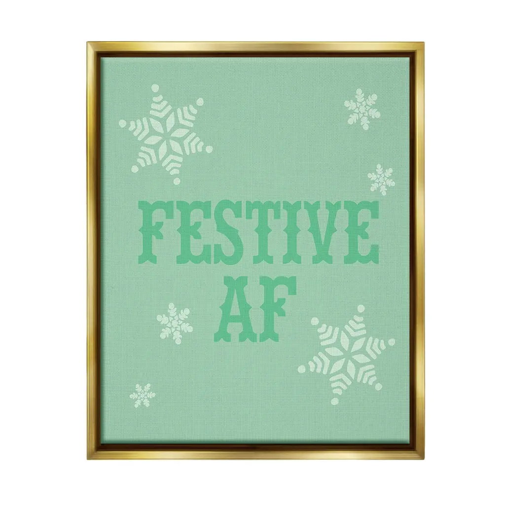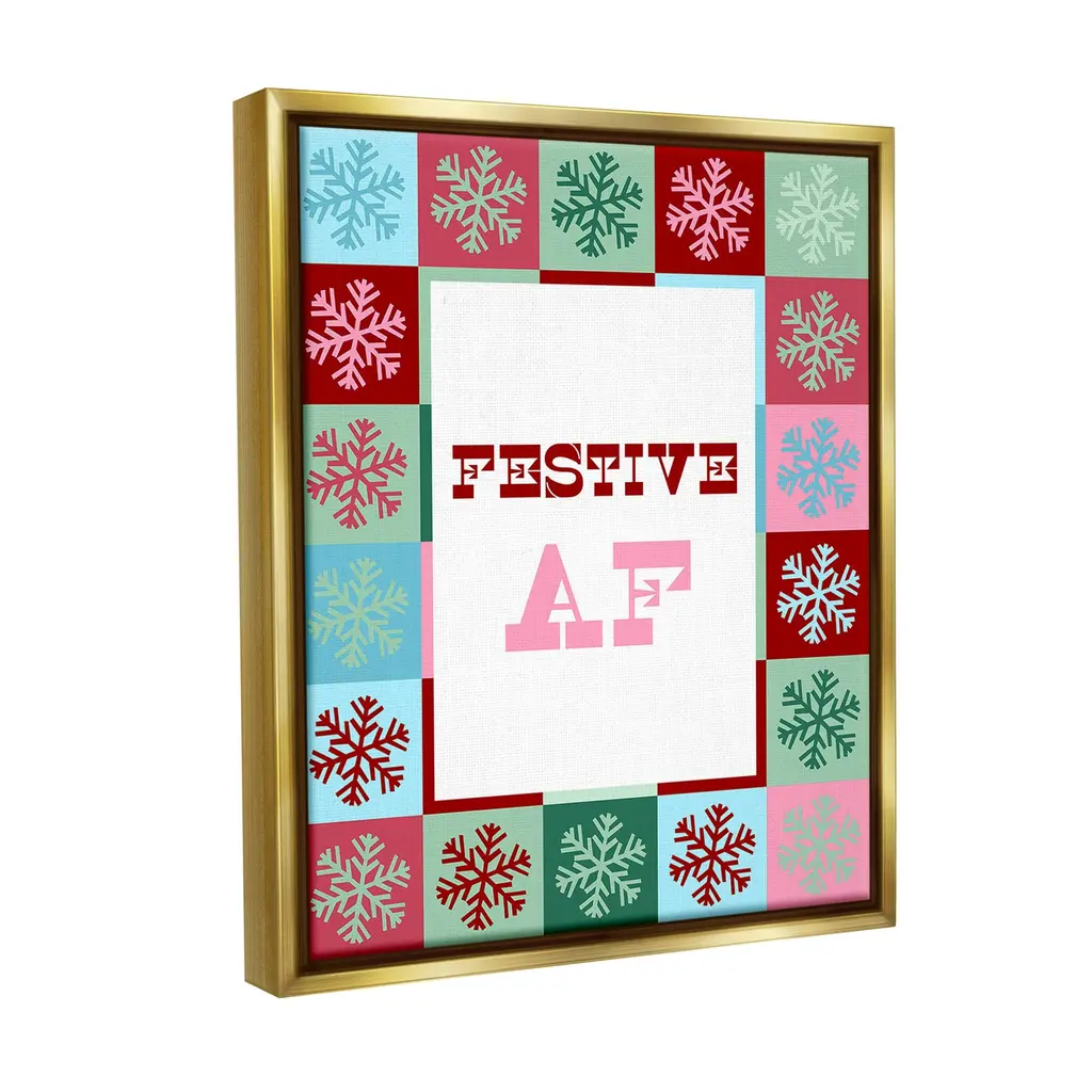 Stupell Festive Af With Snowflakes Framed Floater Canvas Wall Art Design By Lil' Rue - 25 X 31 - Gold