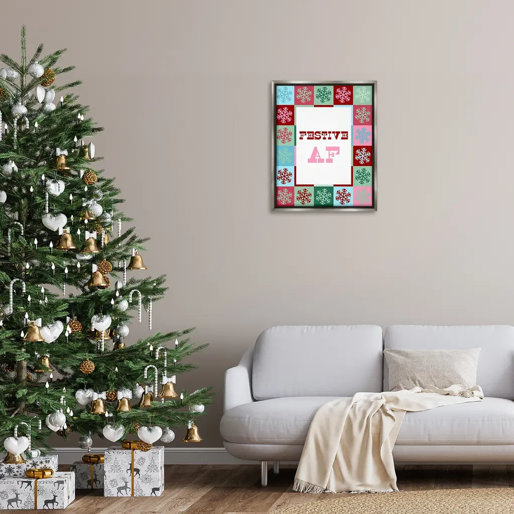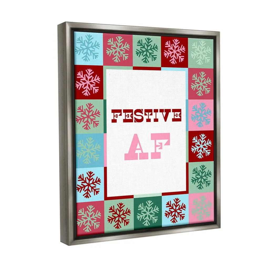 Stupell Festive Af With Snowflakes Framed Floater Canvas Wall Art Design By Lil' Rue - 25 X 31 - Grey