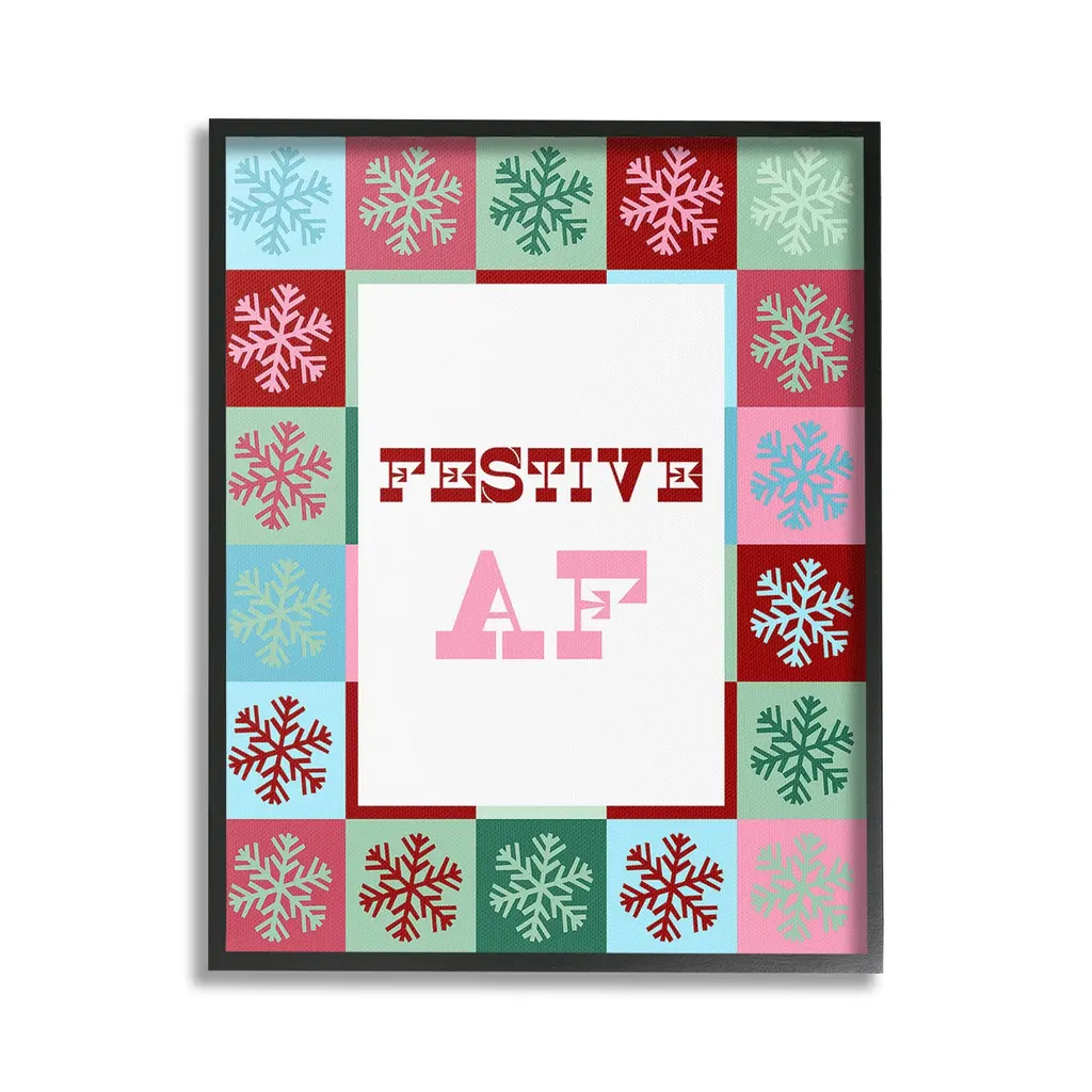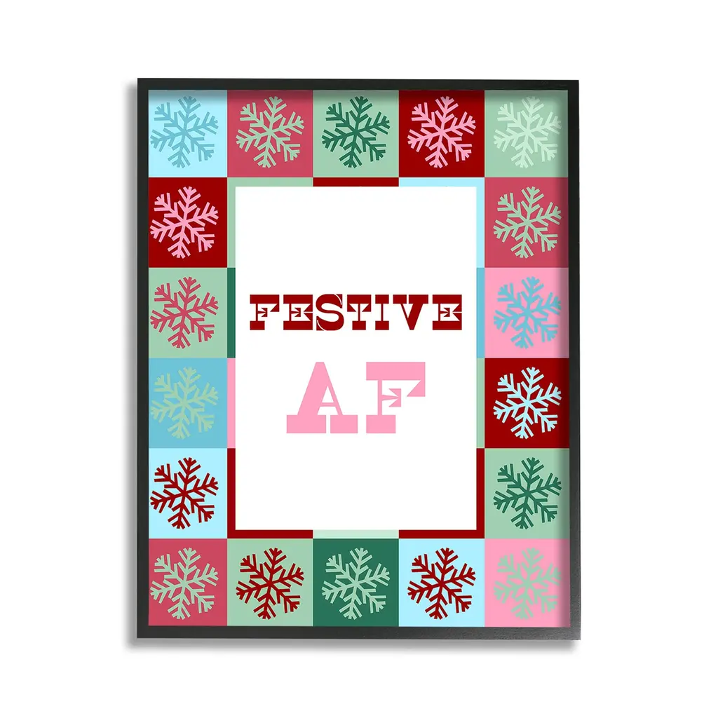 Stupell Festive Af With Snowflakes Framed Giclee Art Design By Lil' Rue - 16 X 20 - White