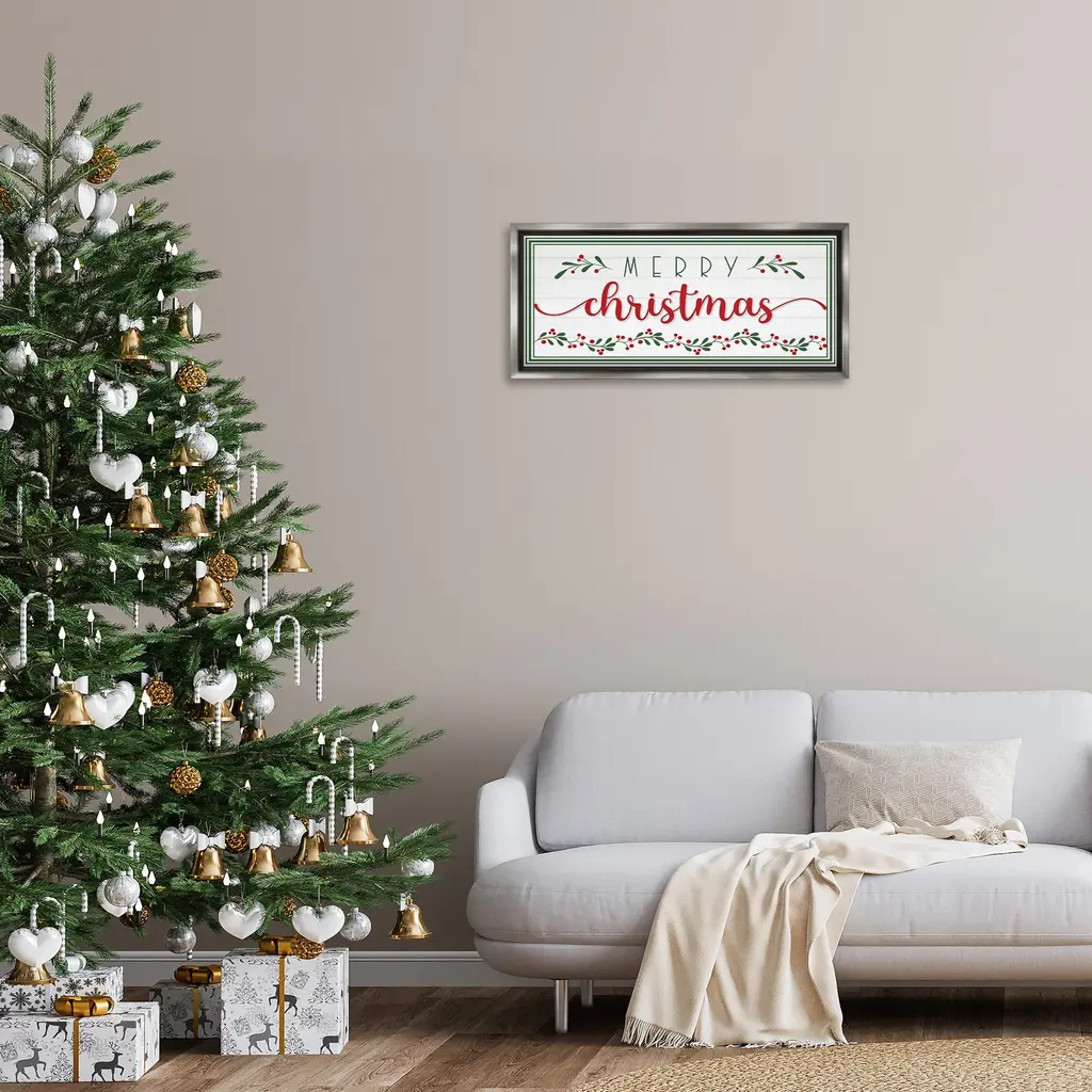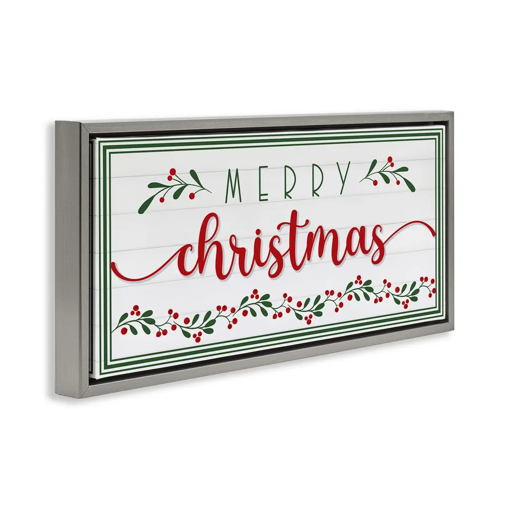 Elevate your home or office to the next level with Stupell Framed Floating Canvas Wall Art. Our premium hand-stretched canvas is mounted securely into a sturdy lightweight frame. The museum-style gap between the wrapped canvas and the box frame gives the illusion of floating artwork. Stupell Wall Art is made in the USA.Features: Dimensions: 25 x 1.7 x 11 Frame, 24 x 1.5 x 10 Canvas ArtFloating Frame Canvas Products are available in sizes 25"x11" and 31"x14". All Floating Frame Canvas Products have a 1.7" Depth.Wall Art is Ready to Hang with Hardware Free Hanging. No Installation required. For Easy Set Up Lean or Layer Artwork on Shelf or Against Wall. Artwork is Permently Fixed into the Frame.Our elevated 1.7" Thick Floating Frame is the perfect complement to our canvas style Wall Art. We use only the highest quality inks in house with industry leading printing solutions. Canvas is hand stretched over a durable wood foundation and then mounted securly into a Modern Box Frame. Made in the USA.Artwork Relates To: Holiday, Christmas, Holly, Botanical, Seasonal, Festive, LeafDesign by AE Design