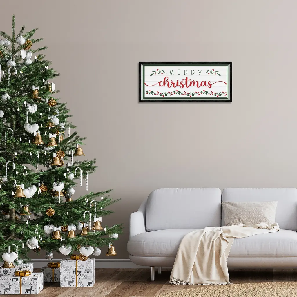 Add dimension to any room with our textured Framed Giclee Artwork. Our framed artwork is securely mounted into a 1.5-inch thick wood grain frame and ready to hang. Frames are available in three alluring styles: black, gray farmhouse and white. In addition, you should check out our oversized options if you want a statement piece. Stupell Wall Art is made in the USA.Features: Dimensions: 24 x 1.5 x 10 FramedFramed Giclee Product Sizes include 24"x10" and 30"x13". All Framed Giclee products have a 1.5" Depth.Wall Art is Ready to Hang with Hardware Free Hanging. No installation required. For Easy Set Up Lean or Layer Artwork on Shelf or Against Wall.Our giclée prints are carefully mounted on a durable MDF backing, and then perfectly finished in a 1.5 inch thick woodgrain frame. Mounted frame colors include black, gray farmhouse and white. Made In USA.Artwork Relates To: Holiday, Christmas, Holly, Botanical, Seasonal, Festive, LeafDesign by AE Design