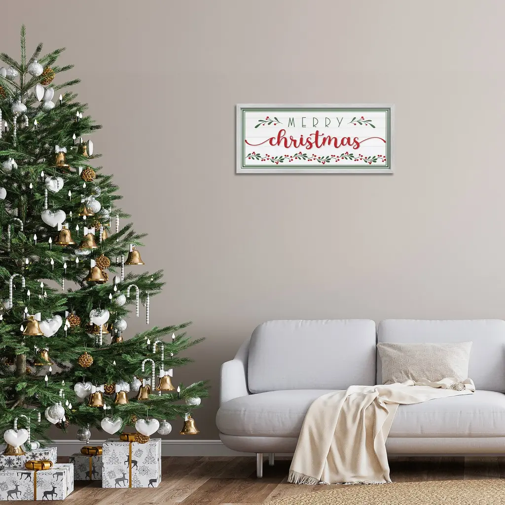 Add dimension to any room with our textured Framed Giclee Artwork. Our framed artwork is securely mounted into a 1.5-inch thick wood grain frame and ready to hang. Frames are available in three alluring styles: black, gray farmhouse and white. In addition, you should check out our oversized options if you want a statement piece. Stupell Wall Art is made in the USA.Features: Dimensions: 24 x 1.5 x 10 FramedFramed Giclee Product Sizes include 24"x10" and 30"x13". All Framed Giclee products have a 1.5" Depth.Wall Art is Ready to Hang with Hardware Free Hanging. No installation required. For Easy Set Up Lean or Layer Artwork on Shelf or Against Wall.Our giclée prints are carefully mounted on a durable MDF backing, and then perfectly finished in a 1.5 inch thick woodgrain frame. Mounted frame colors include black, gray farmhouse and white. Made In USA.Artwork Relates To: Holiday, Christmas, Holly, Botanical, Seasonal, Festive, LeafDesign by AE Design