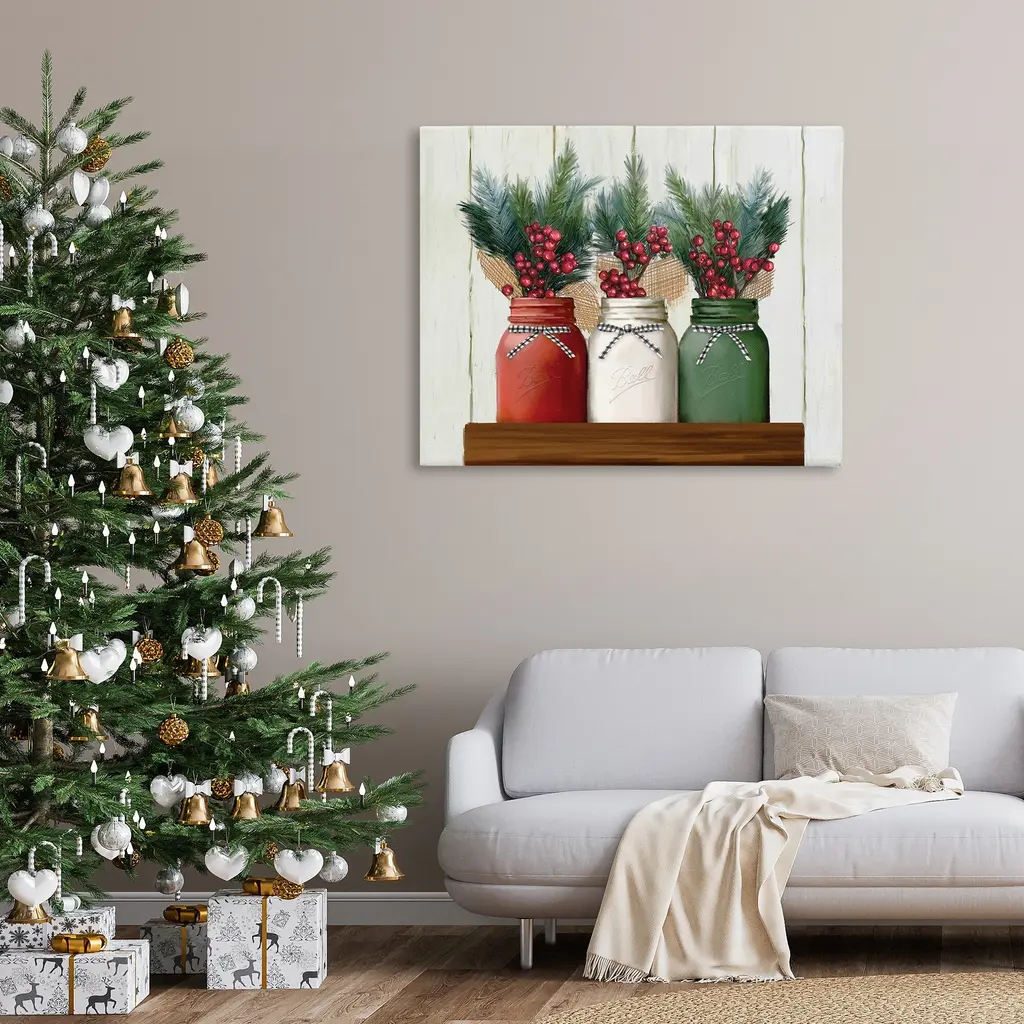 Stupell Festive Holiday Jars Christmas Berry Bouquets Canvas Wall Art - Multi-Color - 36 X 48