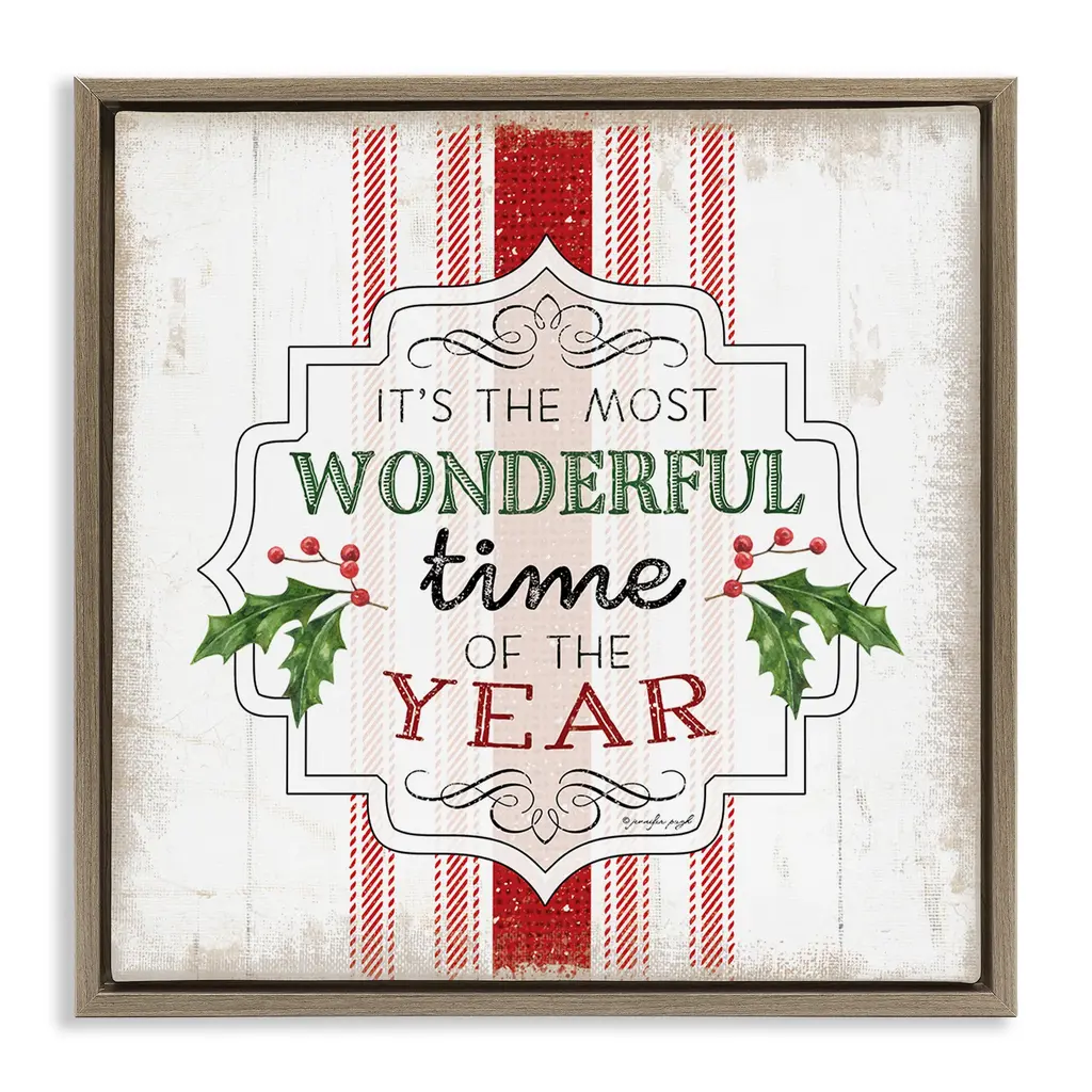 Elevate your home or office to the next level with Stupell Framed Floating Canvas Wall Art. Our premium hand-stretched canvas is mounted securely into a sturdy lightweight frame. The museum-style gap between the wrapped canvas and the box frame gives the illusion of floating artwork. Stupell Wall Art is made in the USA.Features: Dimensions: 18 x 1.7 x 18 Frame, 17 x 1.5 x 17 Canvas ArtFloating Frame Canvas Products are available in sizes 18"x18" and 25"x25". All Floating Frame Canvas Products have a 1.7" Depth.Wall Art is Ready to Hang with Hardware Free Hanging. No Installation required. For Easy Set Up Lean or Layer Artwork on Shelf or Against Wall. Artwork is Permently Fixed into the Frame.Our elevated 1.7" Thick Floating Frame is the perfect complement to our canvas style Wall Art. We use only the highest quality inks in house with industry leading printing solutions. Canvas is hand stretched over a durable wood foundation and then mounted securly into a Modern Box Frame. Made in the USA.Artwork Relates To: Holiday, Christmas, Seasonal, Rustic, Stripes, Pattern, VintageDesign by Jennifer Pugh