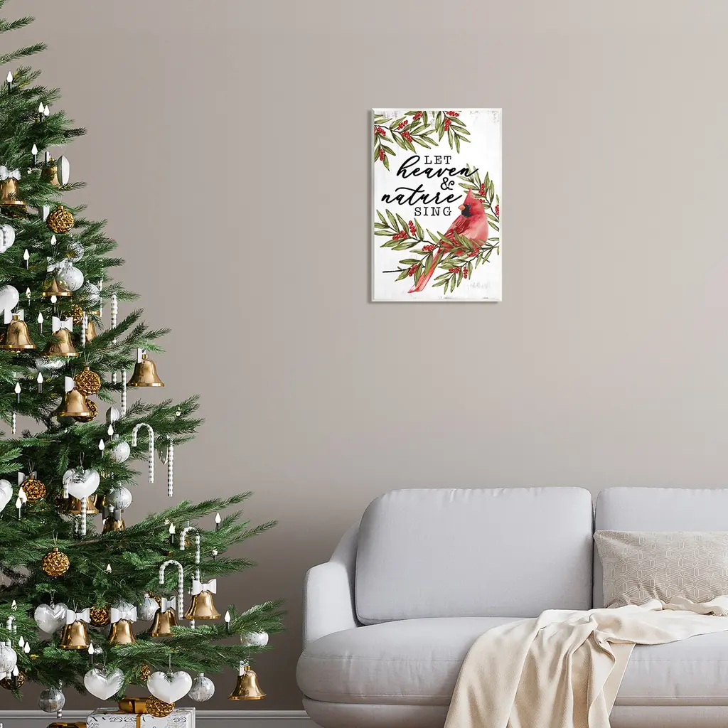 Our wall plaques start as high-quality lithograph prints mounted on durable 0.5-inch thick MDF wood. Each piece is hand finished and comes with a fresh layer of white foil on the sides to give it a crisp, clean look. Plaques arrive ready to hang without installation and come with removable plastic corners to keep them from damage in transit. Stupell Wall Art is made in the USA.Features: Dimensions: 10 x 0.5 x 15 InchesWall Plaque Sizes Include Standard: 10 x 0.5 x 15 Oversized: 13 x 0.5 x 19Wall Art is Ready to Hang with Hardware Free Hanging. No installation required. For Easy Set Up Lean or Layer Artwork on Shelf or Against Wall.All of our wall plaques start off as high quality lithograph prints that are then mounted on durable 0.5 inch thick MDF wood. Each piece is hand finished and comes with a fresh layer of foil on the sides to give it a crisp clean look. Made In USA.Artwork Relates To: Plant, Animal, Bird, Cardinal, Floral, Holiday, Seasonal, Winter, Let Heaven & Nature SingsDesign by Dogwood Portfolio
