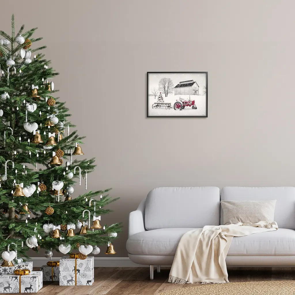 Stupell Festive Red Christmas Tractor Niveous Countryside Flurries Framed Wall Art - 20 X 16 - Black