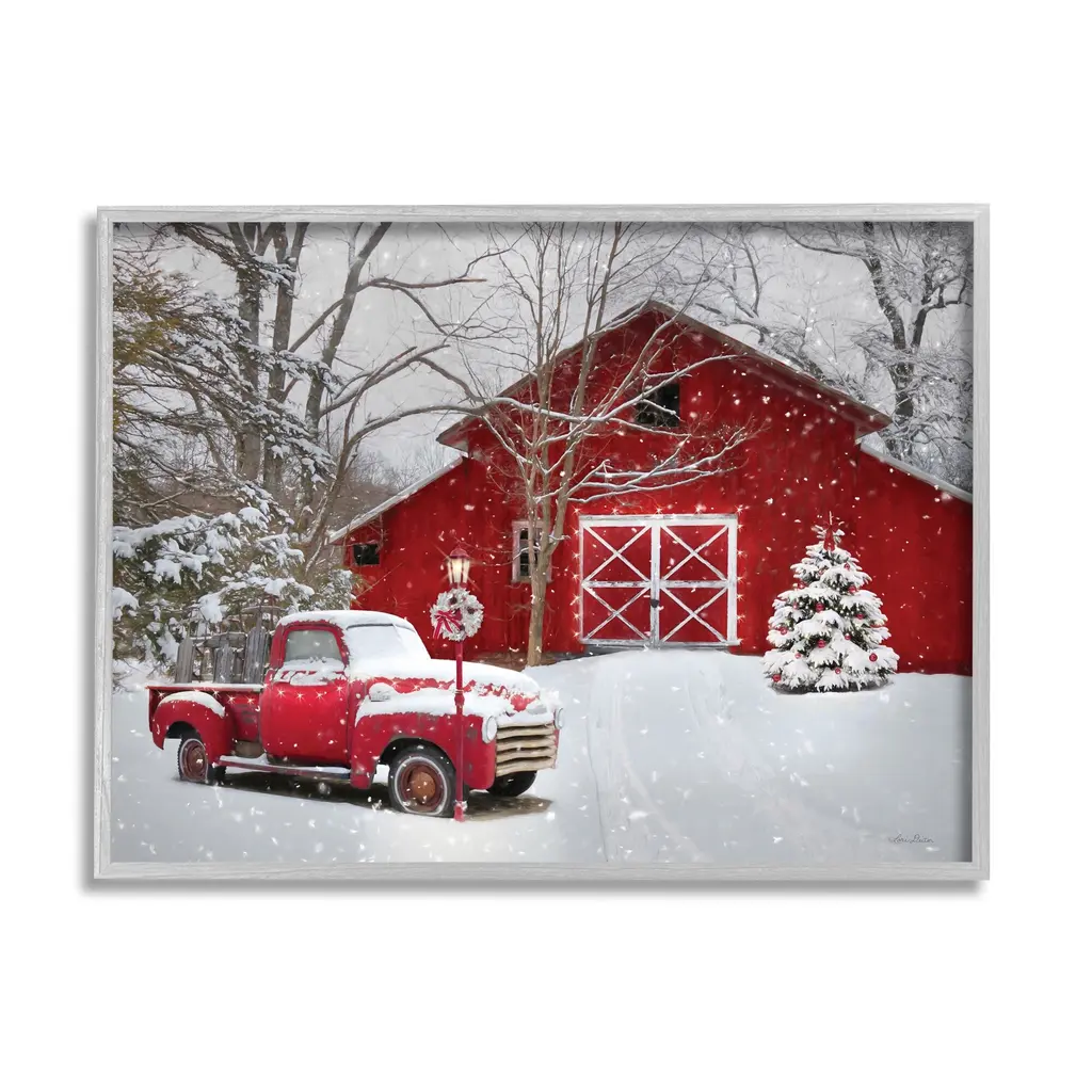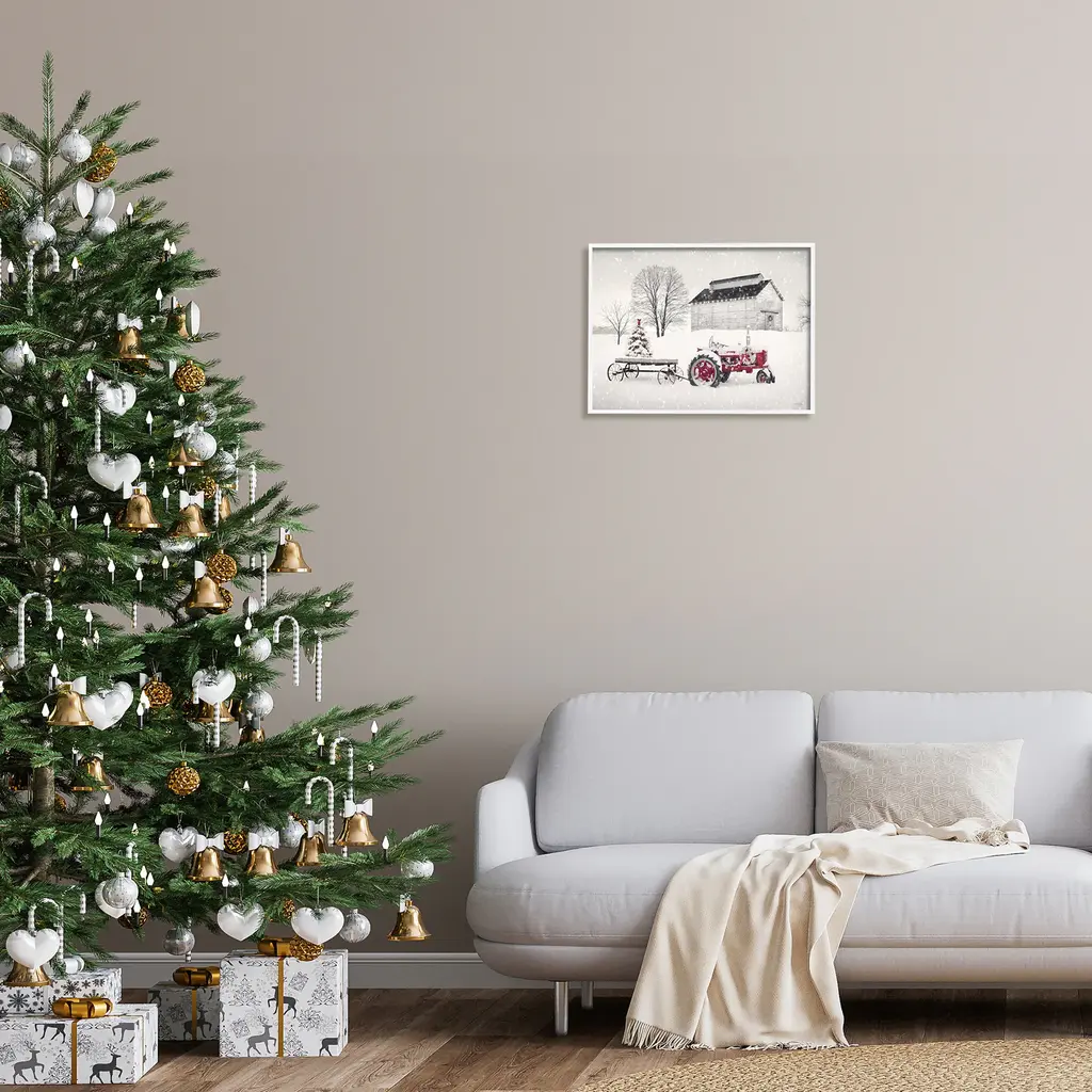 Stupell Festive Red Christmas Tractor Niveous Countryside Flurries Framed Wall Art - 20 X 16 - White