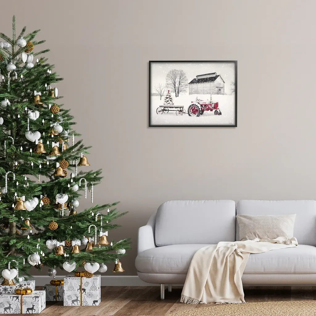 Stupell Festive Red Christmas Tractor Niveous Countryside Flurries Framed Wall Art - 30 X 24 - Black