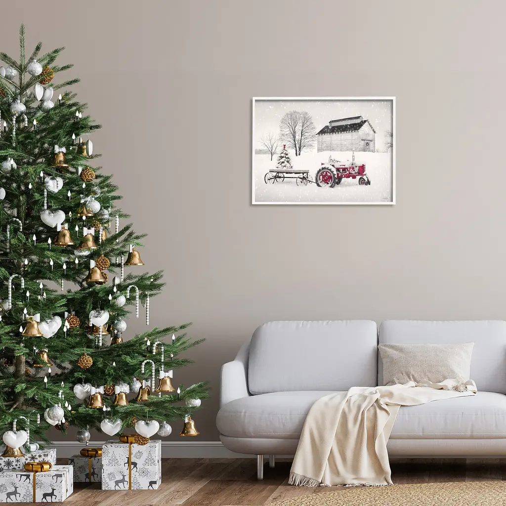 Stupell Festive Red Christmas Tractor Niveous Countryside Flurries Framed Wall Art - 30 X 24 - White