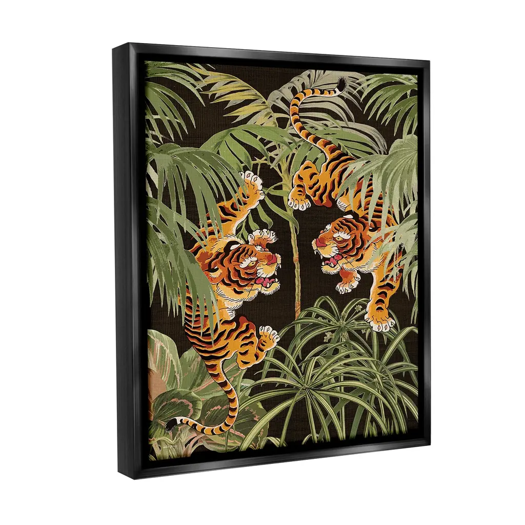 Stupell Fierce Tigers With Plants Framed Floater Canvas Wall Art Design By Amber Sterling - 17 X 21 - Black