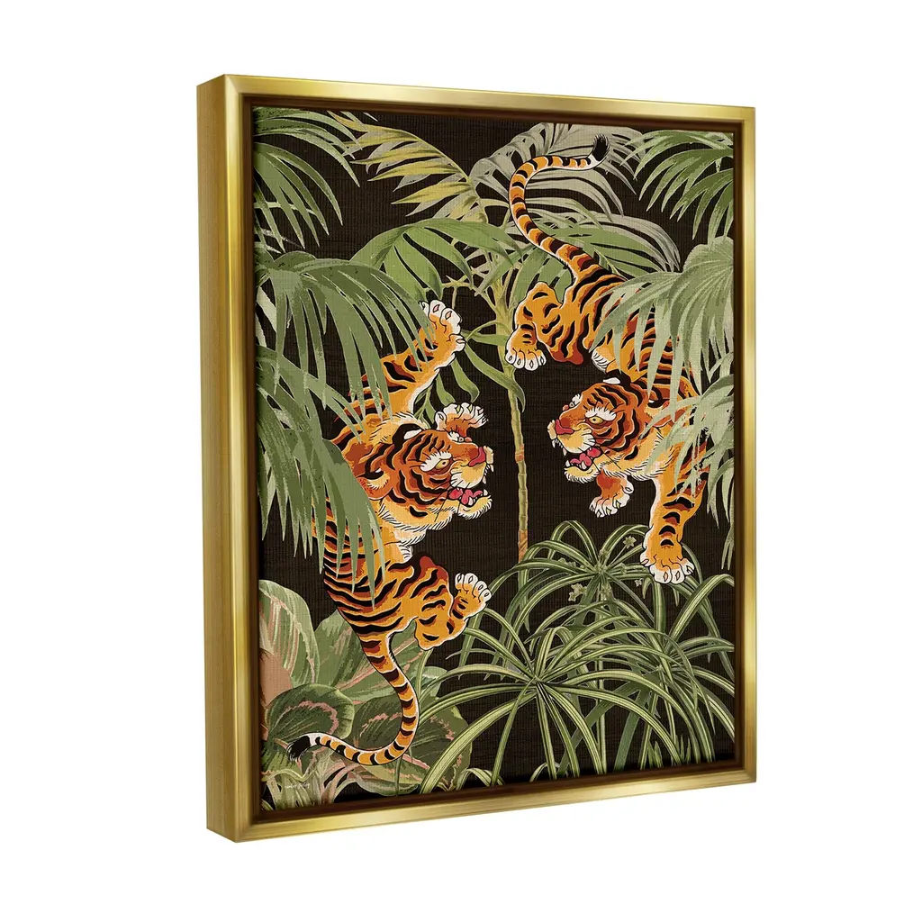 Stupell Fierce Tigers With Plants Framed Floater Canvas Wall Art Design By Amber Sterling - 17 X 21 - Gold