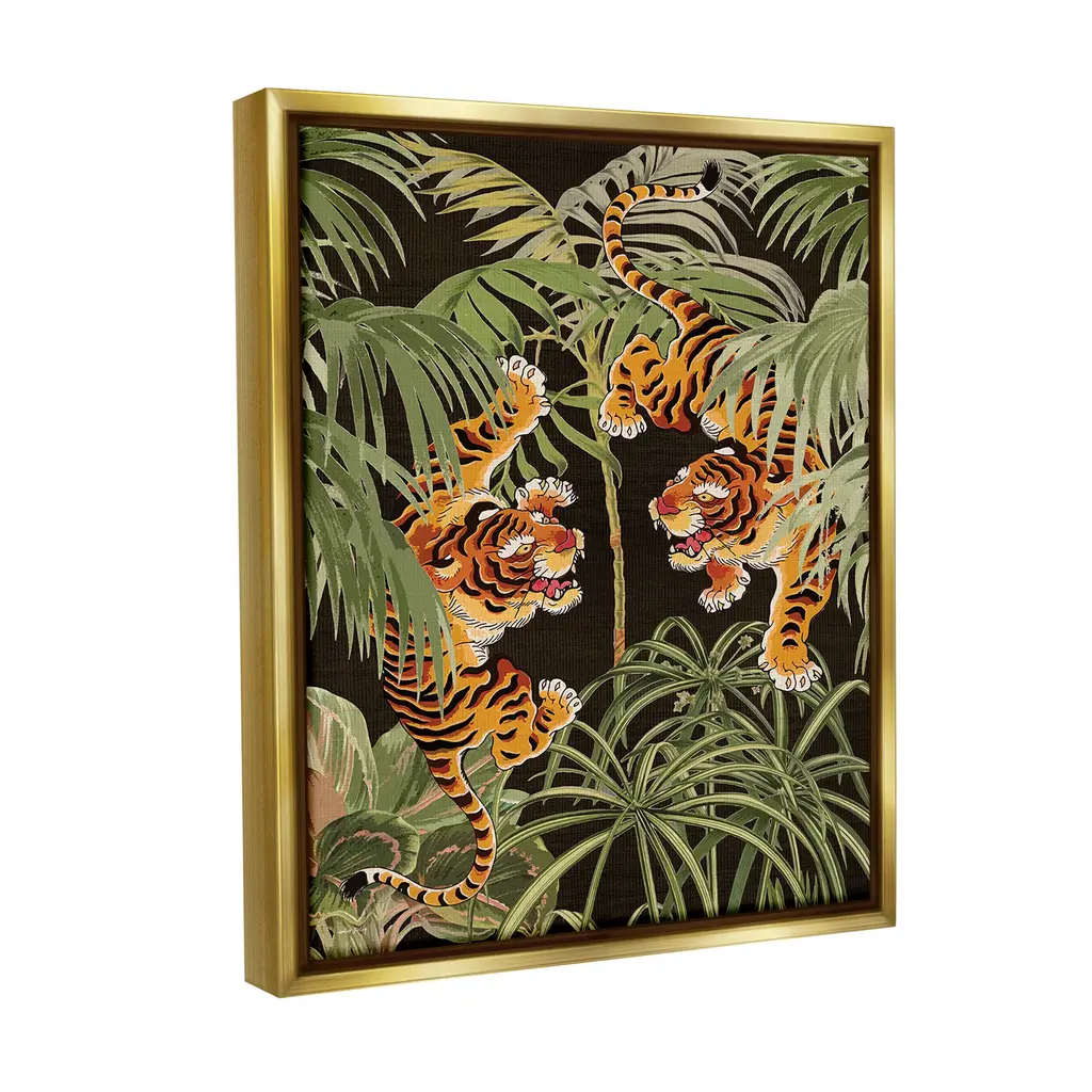 Stupell Fierce Tigers With Plants Framed Floater Canvas Wall Art Design By Amber Sterling - 25 X 31 - Gold
