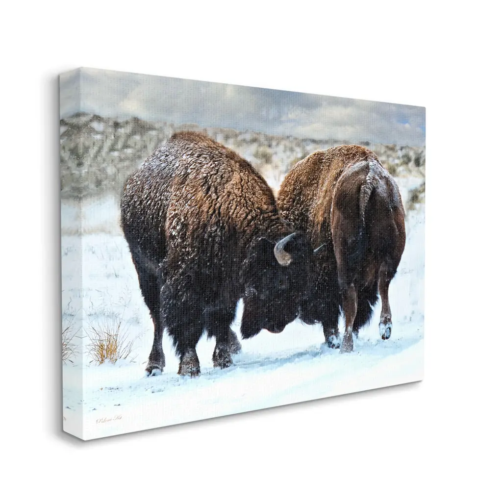 Stupell Fighting Bison Snow Scene Canvas Wall Art Design By Lena Owens - 20 X 16