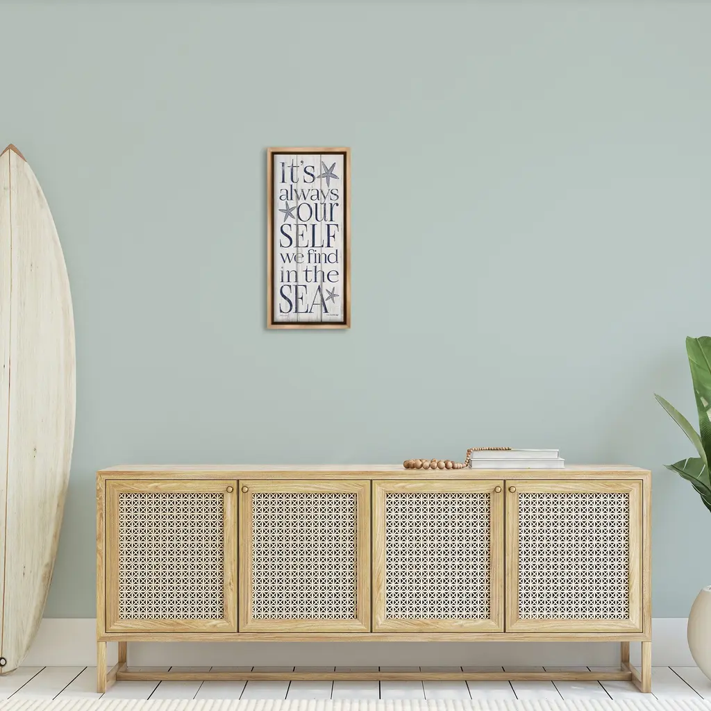 Stupell Find Self In Sea Phrase Framed Floater Canvas Wall Art Design By Stephanie Workman Marrott - 11 X 25 - Brown