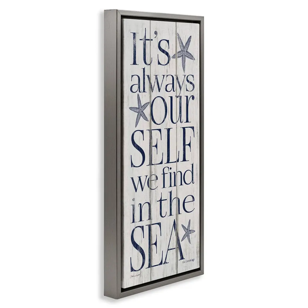 Stupell Find Self In Sea Phrase Framed Floater Canvas Wall Art Design By Stephanie Workman Marrott - 11 X 25 - Grey