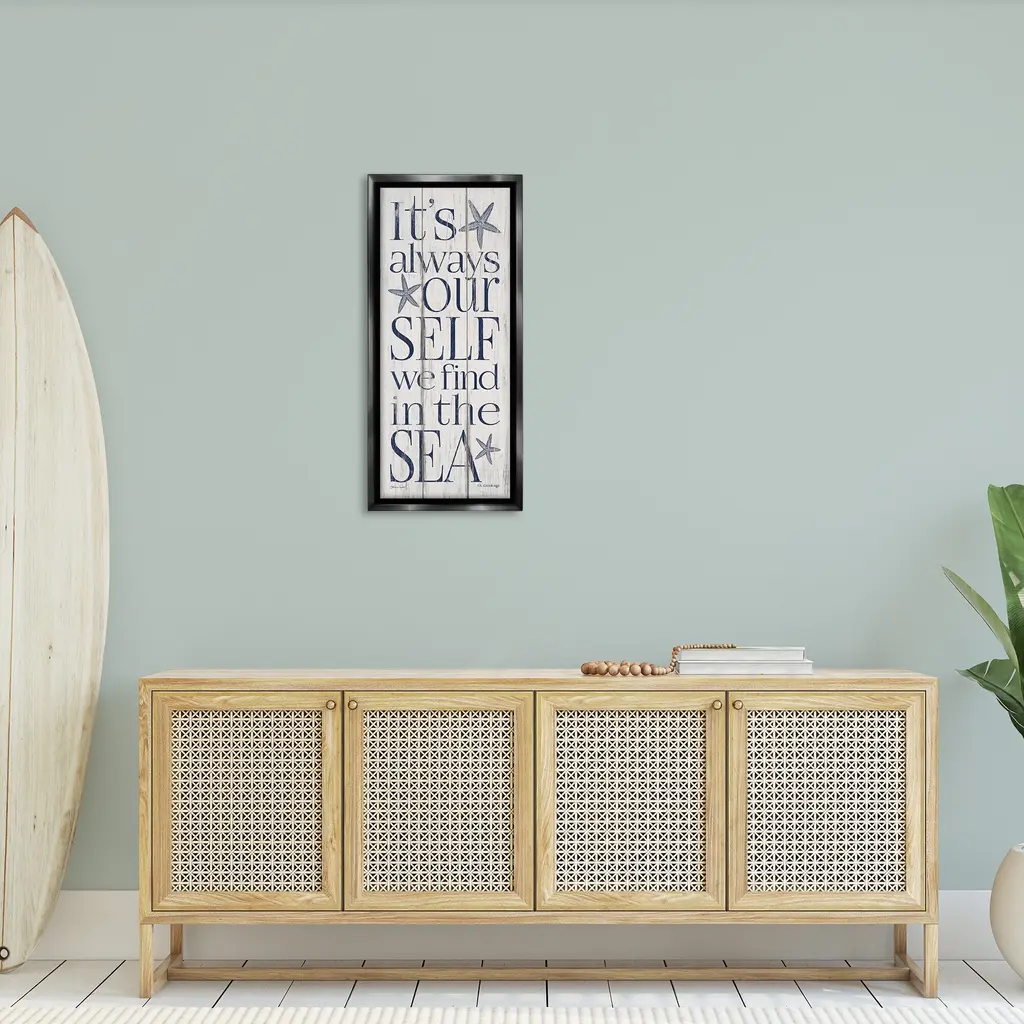Stupell Find Self In Sea Phrase Framed Floater Canvas Wall Art Design By Stephanie Workman Marrott - 14 X 31 - Black