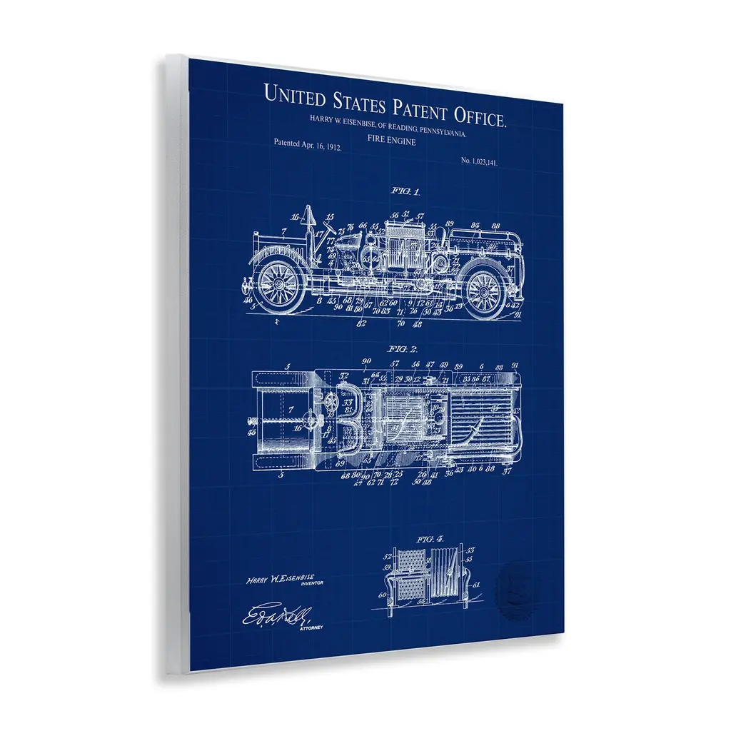 Stupell Fire Engine Blueprint Wall Plaque Art Design By Karl Hronek - 11 X 14