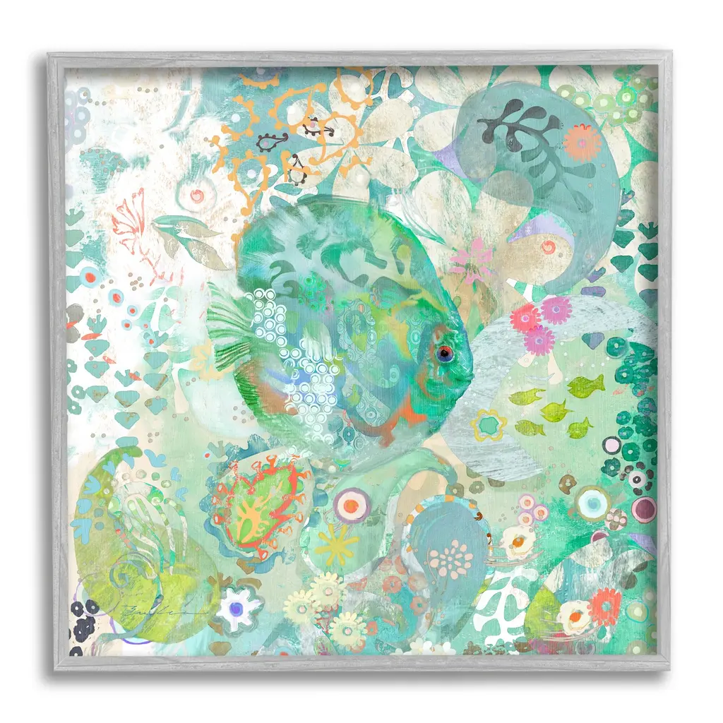 Add dimension to any room with our textured Framed Giclee Artwork. Our framed artwork is securely mounted into a 1.5-inch thick wood grain frame and ready to hang. Frames are available in three alluring styles: black, gray farmhouse and white. In addition, you should check out our oversized options if you want a statement piece. Stupell Wall Art is made in the USA.Features: Dimensions: 12 x 1.5 x 12 FramedFramed Giclee Sizes Include Standard: 12 x 1.5 x 12 Large: 17 x 1.5 x 17 Oversized: 24 x 1.5 x 24Wall Art is Ready to Hang with Hardware Free Hanging. No installation required. For Easy Set Up Lean or Layer Artwork on Shelf or Against Wall.Our giclée prints are carefully mounted on a durable MDF backing, and then perfectly finished in a 1.5 inch thick woodgrain frame. Mounted frame colors include black, gray farmhouse and white. Made In USA.Artwork Relates To: Pattern, Collage, Floral, Animal, Fish, Sea, ModernDesign by Evelia Designs
