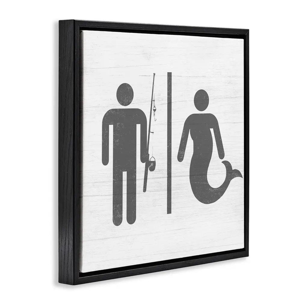 Stupell Fisherman Or Mermaid Bathroom Framed Floater Canvas Wall Art Design By Daphne Polselli - 18 X 18 - Black