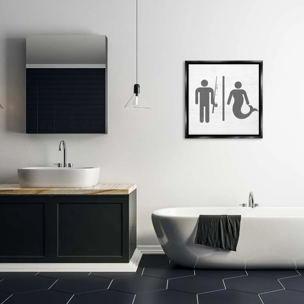 Stupell Fisherman Or Mermaid Bathroom Framed Floater Canvas Wall Art Design By Daphne Polselli - 25 X 25 - Black