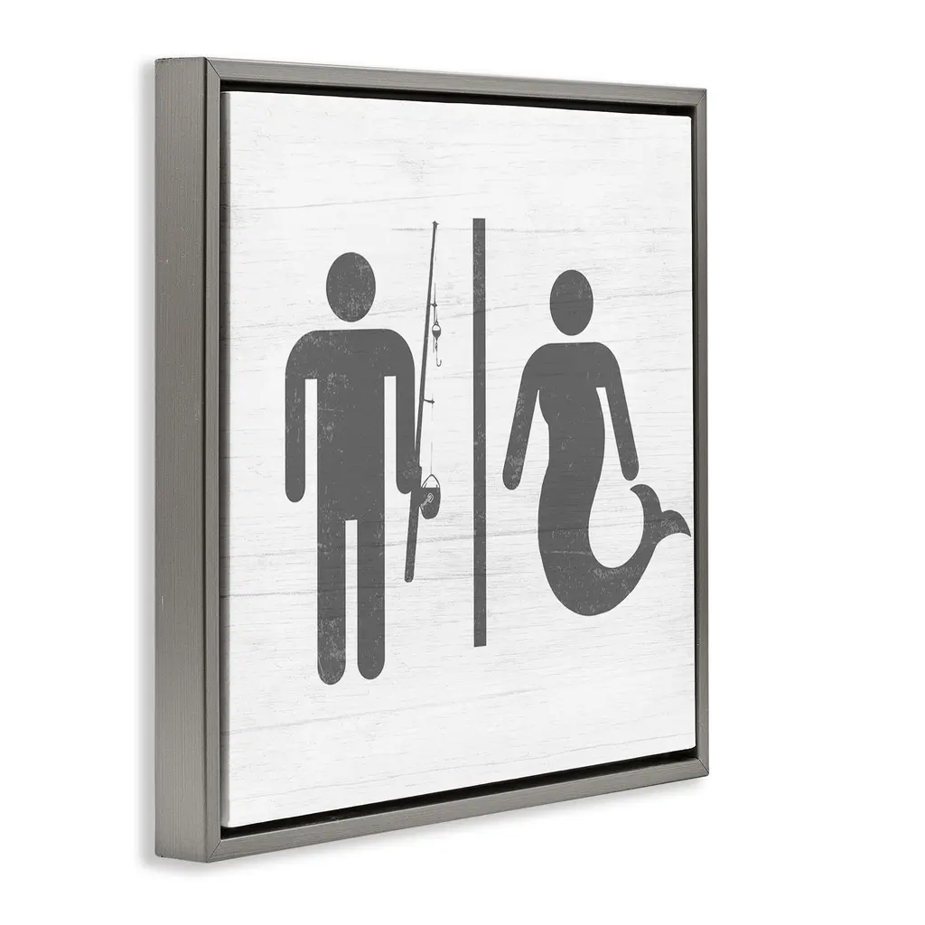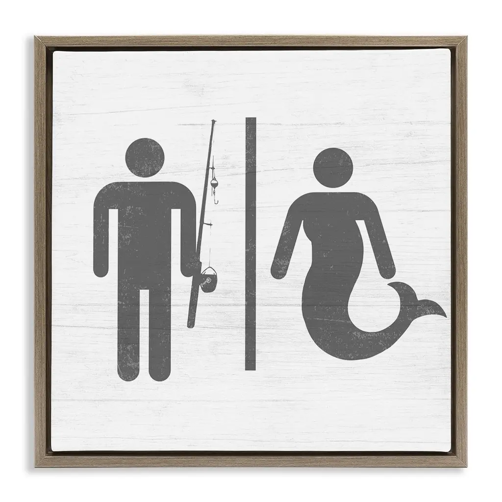 Stupell Fisherman Or Mermaid Bathroom Framed Floater Canvas Wall Art Design By Daphne Polselli - 25 X 25 - Grey