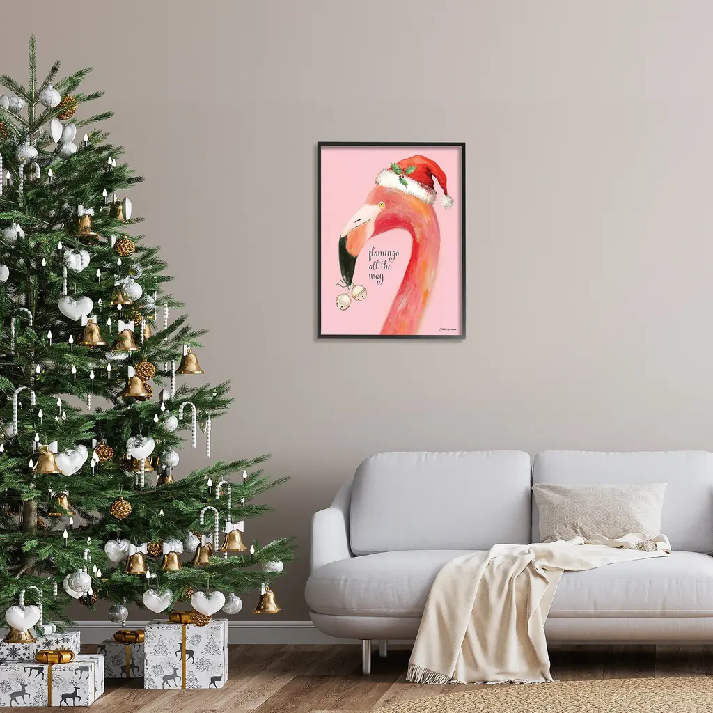 Stupell Flamingo All The Way Pink Santa Claus Bird Framed Wall Art - Orange - 24 X 30 - Black