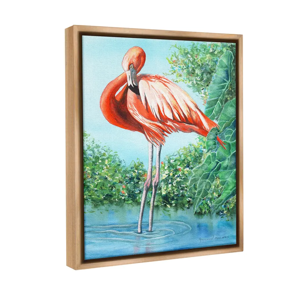 Elevate your home or office to the next level with Stupell Framed Floating Canvas Wall Art. Our premium hand-stretched canvas is mounted securely into a sturdy lightweight frame. The museum-style gap between the wrapped canvas and the box frame gives the illusion of floating artwork. Stupell Wall Art is made in the USA.Features: Dimensions: 17 x 1.7 x 21 Frame, 16 x 1.5 x 20 Canvas ArtFloating Frame Canvas Products are available in sizes 17"x21" and 25"x31". All Floating Frame Canvas Products have a 1.7" Depth.Wall Art is Ready to Hang with Hardware Free Hanging. No Installation required. For Easy Set Up Lean or Layer Artwork on Shelf or Against Wall. Artwork is Permently Fixed into the Frame.Our elevated 1.7" Thick Floating Frame is the perfect complement to our canvas style Wall Art. We use only the highest quality inks in house with industry leading printing solutions. Canvas is hand stretched over a durable wood foundation and then mounted securly into a Modern Box Frame. Made in the USA.Artwork Relates To: Animal, Bird, Flamingo, Tropical, Leaf, Plant, Botanical, Water, Ripple, Landscape, Nature, PondDesign by Christine Reichow