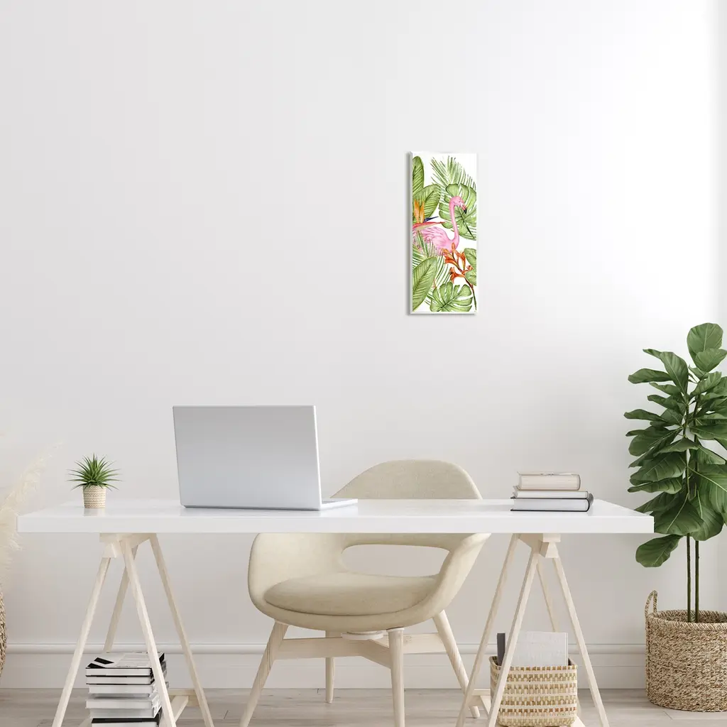 Our wall plaques start as high-quality lithograph prints mounted on durable 0.5-inch thick MDF wood. Each piece is hand finished and comes with a fresh layer of white foil on the sides to give it a crisp, clean look. Plaques arrive ready to hang without installation and come with removable plastic corners to keep them from damage in transit. Stupell Wall Art is made in the USA.Features: Dimensions: 7 x 0.5 x 17 InchesWall Art is Ready to Hang with Hardware Free Hanging. No installation required. For Easy Set Up Lean or Layer Artwork on Shelf or Against Wall.All of our wall plaques start off as high quality lithograph prints that are then mounted on durable 0.5 inch thick MDF wood. Each piece is hand finished and comes with a fresh layer of foil on the sides to give it a crisp clean look. Made In USA.Artwork Relates To: Plant, Animal, Bird, Flamingo, Leaf, Jungle, Nature, TropicalDesign by Kim Allen