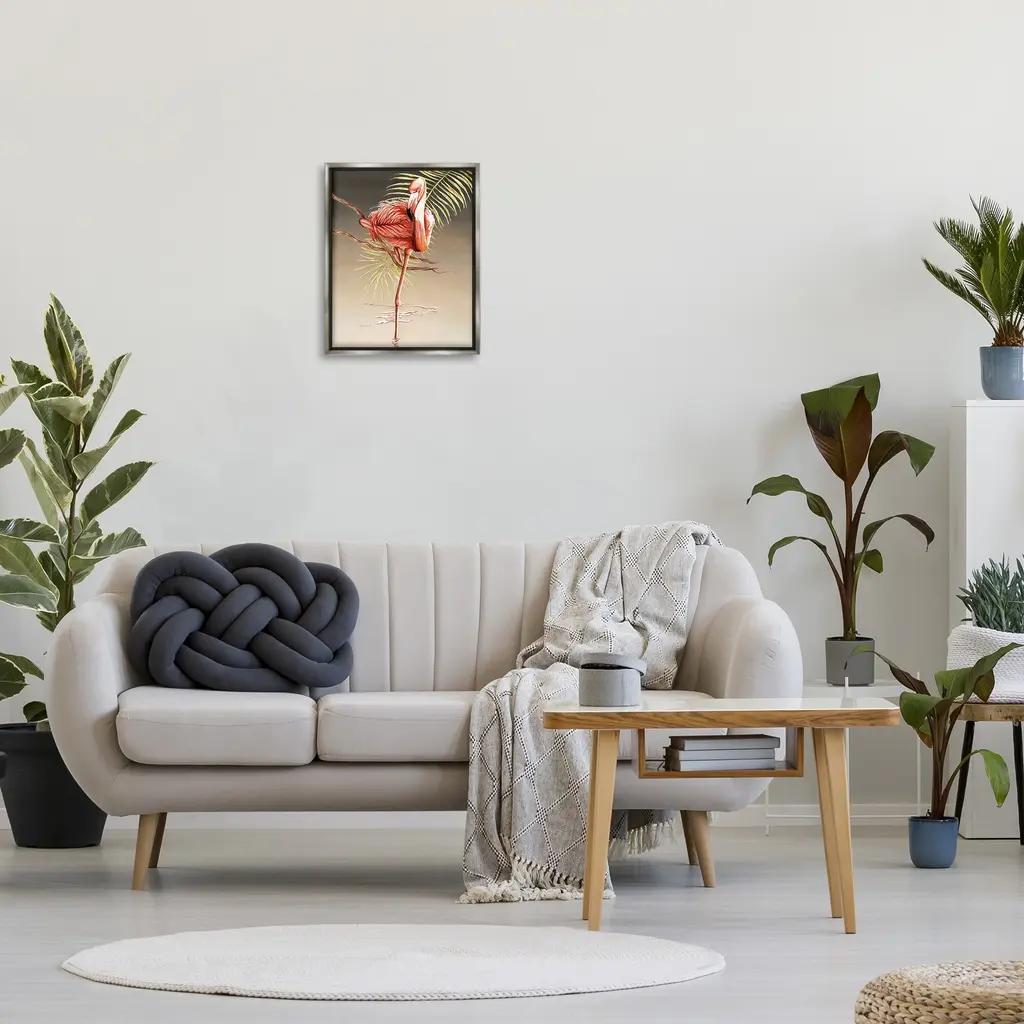 Stupell Flamingo Balancing With Leaf Framed Floater Canvas Wall Art Design By Christine Reichow - 17 X 21 - Grey