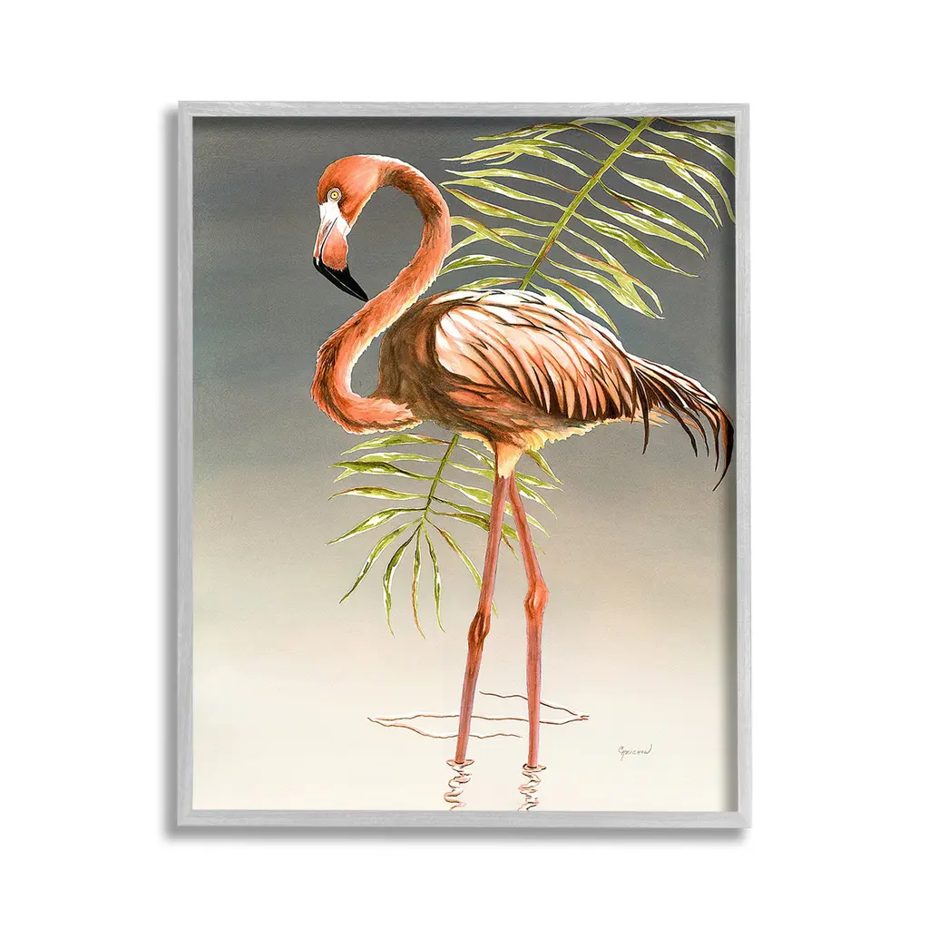 Add dimension to any room with our textured Framed Giclee Artwork. Our framed artwork is securely mounted into a 1.5-inch thick wood grain frame and ready to hang. Frames are available in three alluring styles: black, gray farmhouse and white. In addition, you should check out our oversized options if you want a statement piece. Stupell Wall Art is made in the USA.Features: Dimensions: 11 x 1.5 x 14 FramedFramed Giclee Products are available in the sizes 11"x14", 16"x20" or 24"x30". All Framed Giclee Products have a 1.5" Depth. Wall Art is Ready to Hang with Hardware Free Hanging. No installation required. For Easy Set Up Lean or Layer Artwork on Shelf or Against Wall.Our giclée prints are carefully mounted on a durable MDF backing, and then perfectly finished in a 1.5 inch thick woodgrain frame. Mounted frame colors include black, gray farmhouse and white. Made In USA.Artwork Relates To: Animal, Bird, Flamingo, Tropical, Leaf, Plant, Botanical, Water, RippleDesign by Christine Reichow
