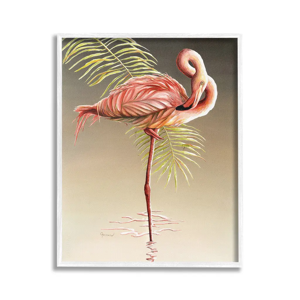 Add dimension to any room with our textured Framed Giclee Artwork. Our framed artwork is securely mounted into a 1.5-inch thick wood grain frame and ready to hang. Frames are available in three alluring styles: black, gray farmhouse and white. In addition, you should check out our oversized options if you want a statement piece. Stupell Wall Art is made in the USA.Features: Dimensions: 11 x 1.5 x 14 FramedFramed Giclee Products are available in the sizes 11"x14", 16"x20" or 24"x30". All Framed Giclee Products have a 1.5" Depth. Wall Art is Ready to Hang with Hardware Free Hanging. No installation required. For Easy Set Up Lean or Layer Artwork on Shelf or Against Wall.Our giclée prints are carefully mounted on a durable MDF backing, and then perfectly finished in a 1.5 inch thick woodgrain frame. Mounted frame colors include black, gray farmhouse and white. Made In USA.Artwork Relates To: Animal, Bird, Flamingo, Tropical, Leaf, Plant, Botanical, Water, RippleDesign by Christine Reichow